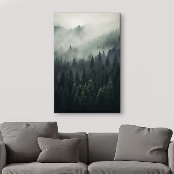 Vászonkép Köd gomolyog a sűrű örökzöld erdő felett Nr s46512