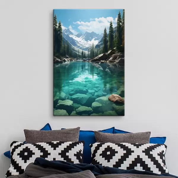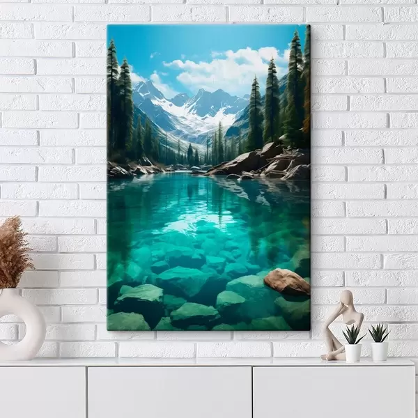 Vászonkép Tiszta alpesi folyó sziklás mederrel és havas csúcsokkal Nr s46514