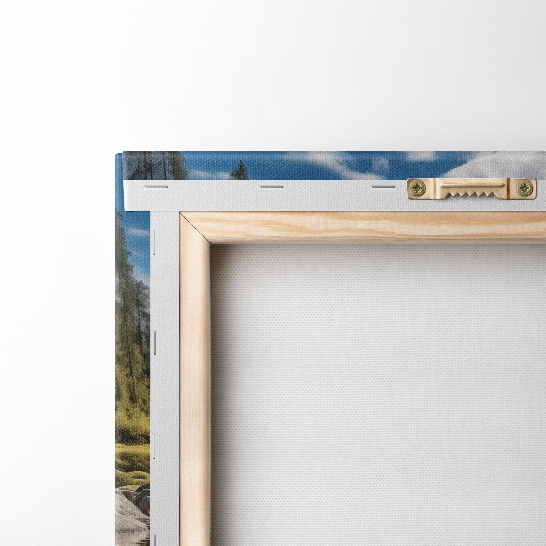 Ahhoz, hogy a vásznat a feszítőrúdra feszítsük anélkül, hogy a kép megsérülne, tükrözött képet használunk.
