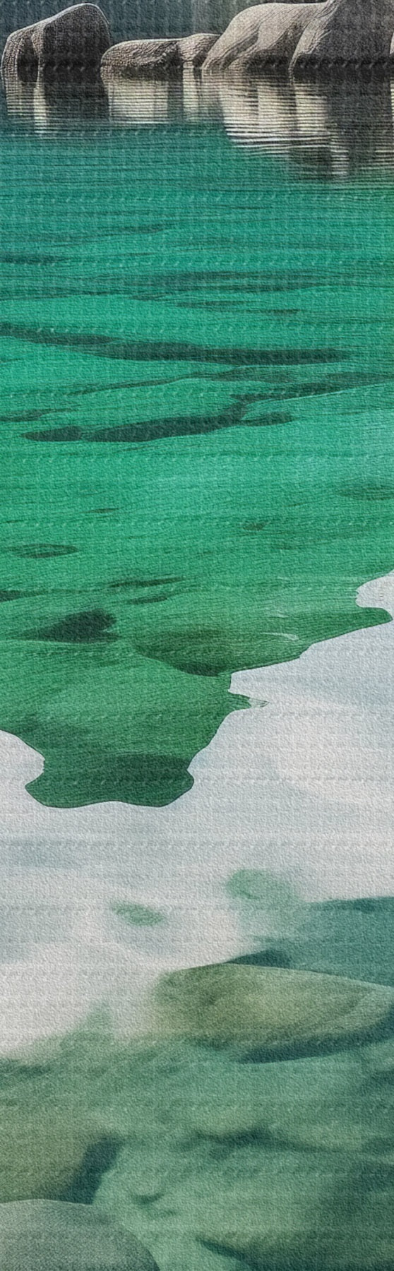 Vászonkép Smaragdszínű alpesi tó, alatta sziklákkal és magas csúcsokkal Nr s46515