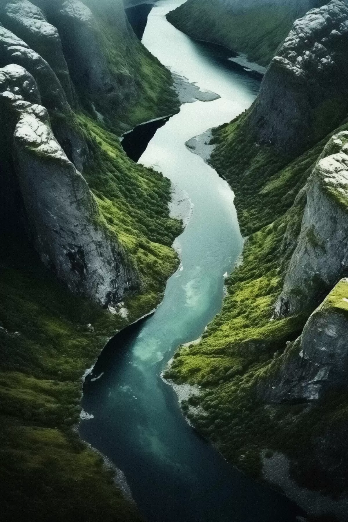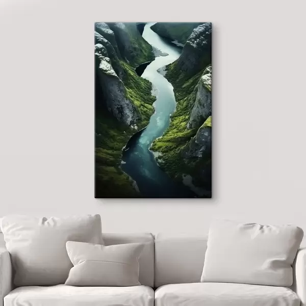 Vászonkép Kanyargós folyó sziklák között, madártávlatból Nr s46521