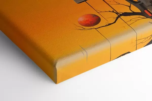 Vászonkép Szürreális faház narancssárga háttér előtt Nr s46526