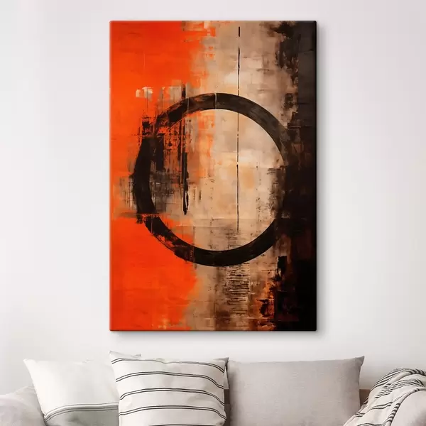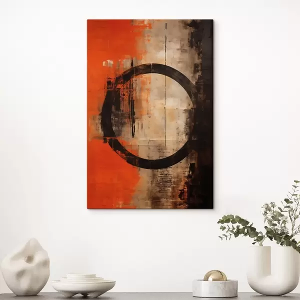 Vászonkép Absztrakt, nagy fekete körrel és meleg textúrákkal Nr s46528