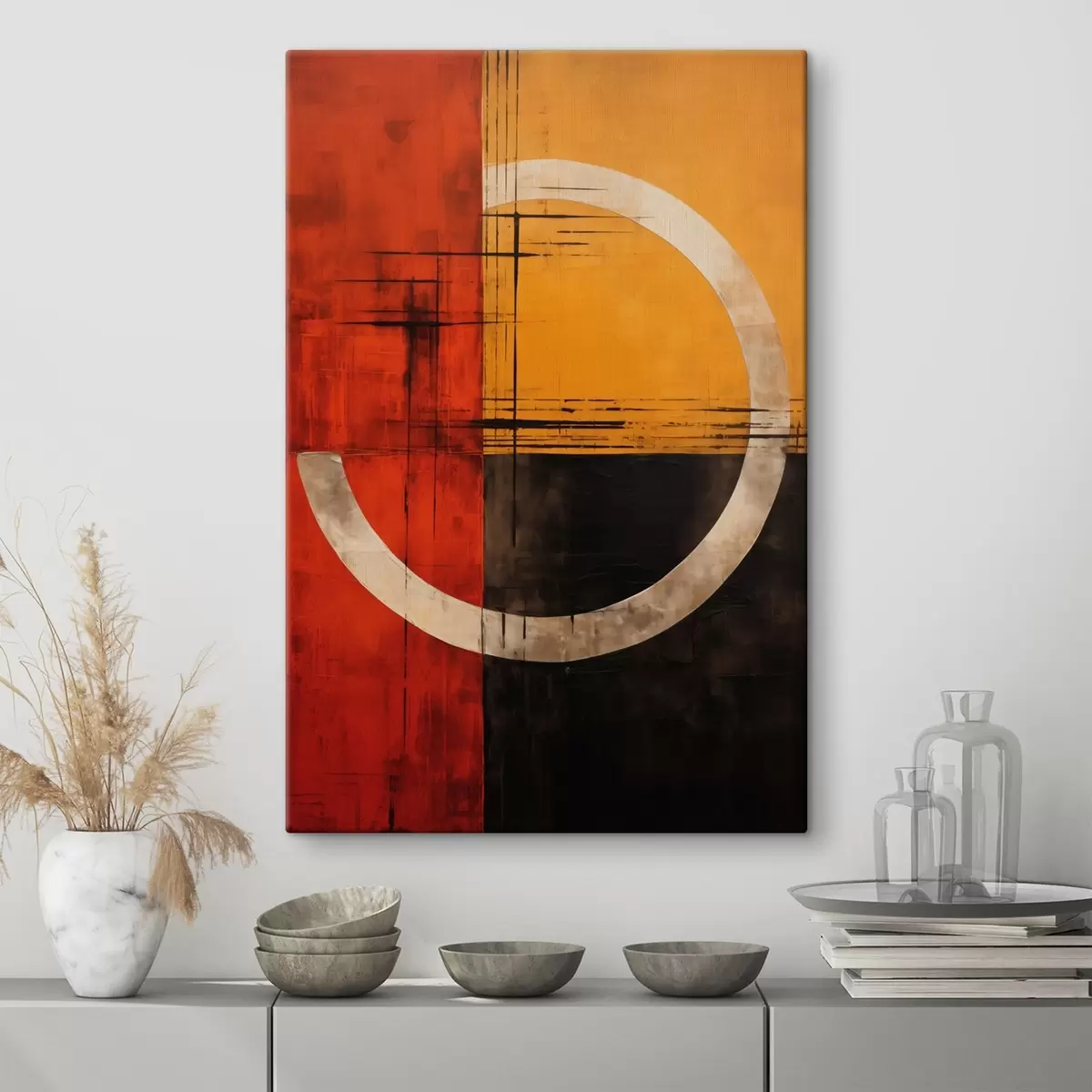 Vászonkép Absztrakt kör vörös-fekete háttérrel és vonalakkal Nr s46535