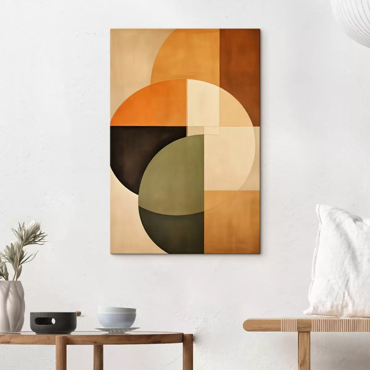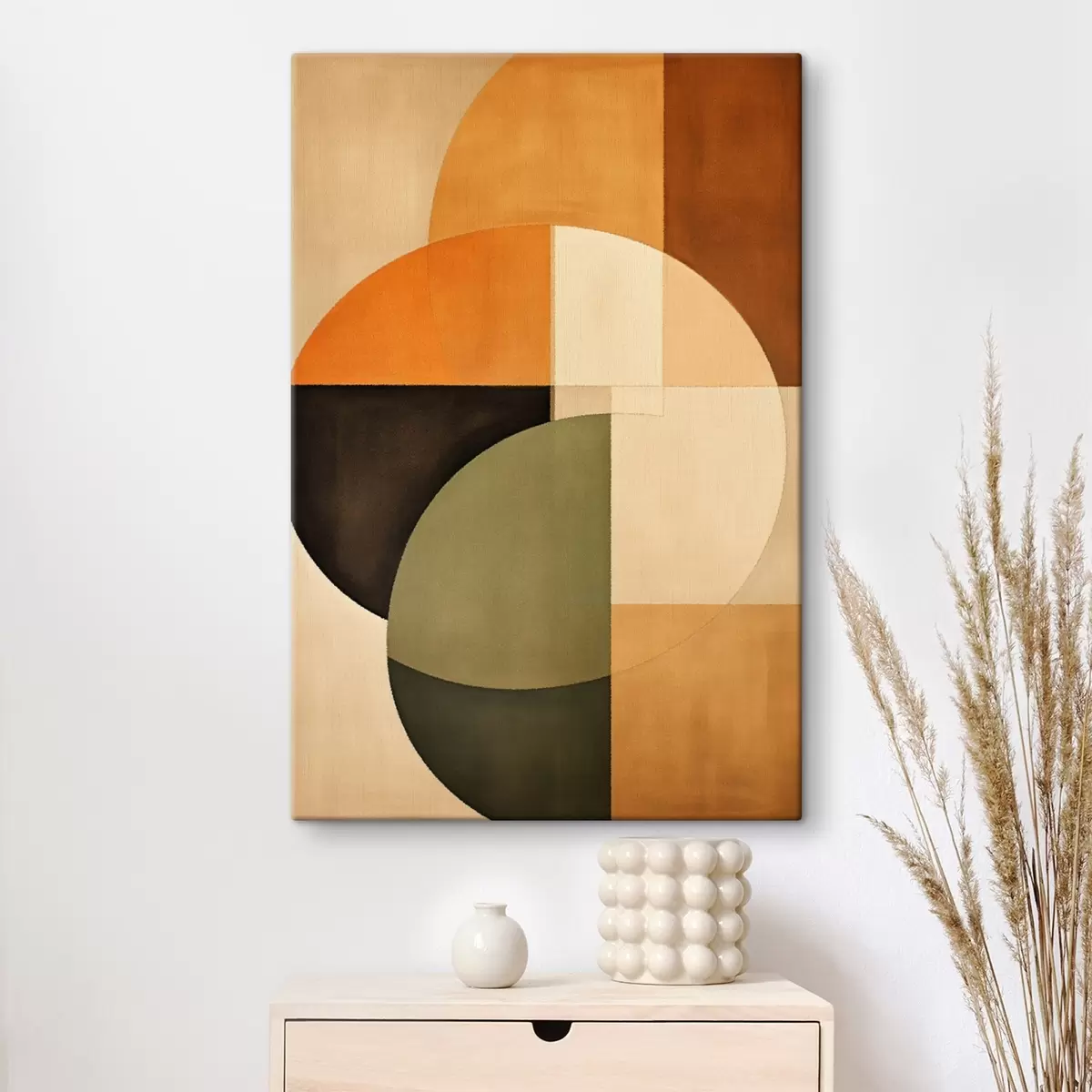 Vászonkép Keresztbe futó körök homok-olajzöld színpalettán Nr s46537