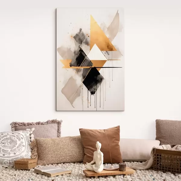Vászonkép Geometria háromszögekkel és fekete rombuszokkal, bézs színű vonásokkal Nr s46539