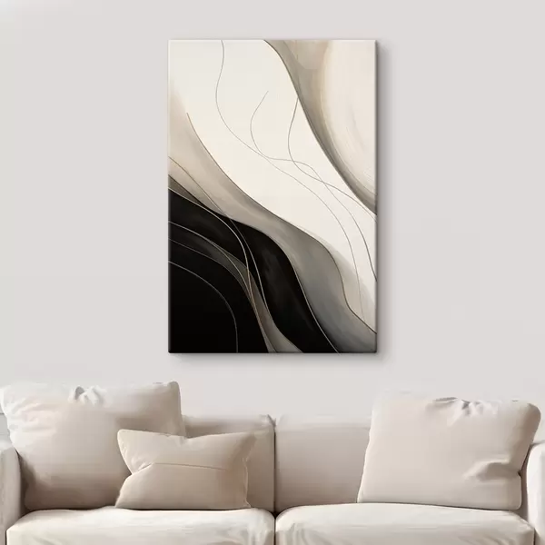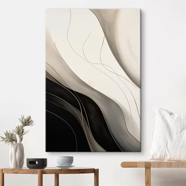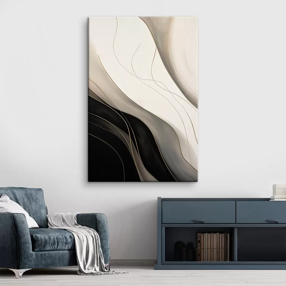 Vászonkép Fekete és bézs hullámok finom okker vonalakkal Nr s46541