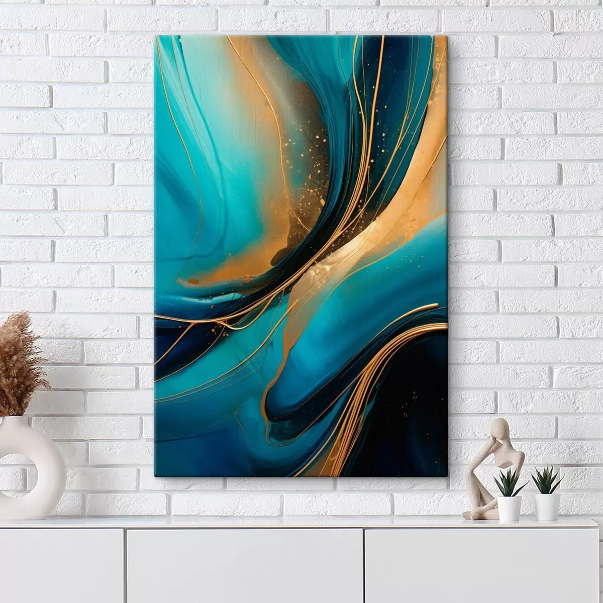 Vászonkép Türkizkék áramlás vékony okker szálakkal Nr s46543