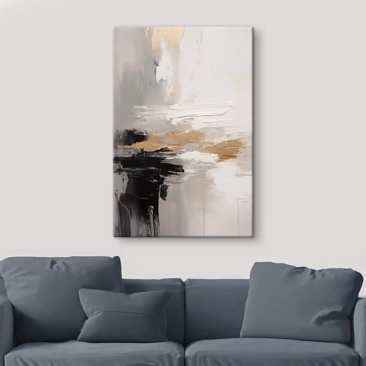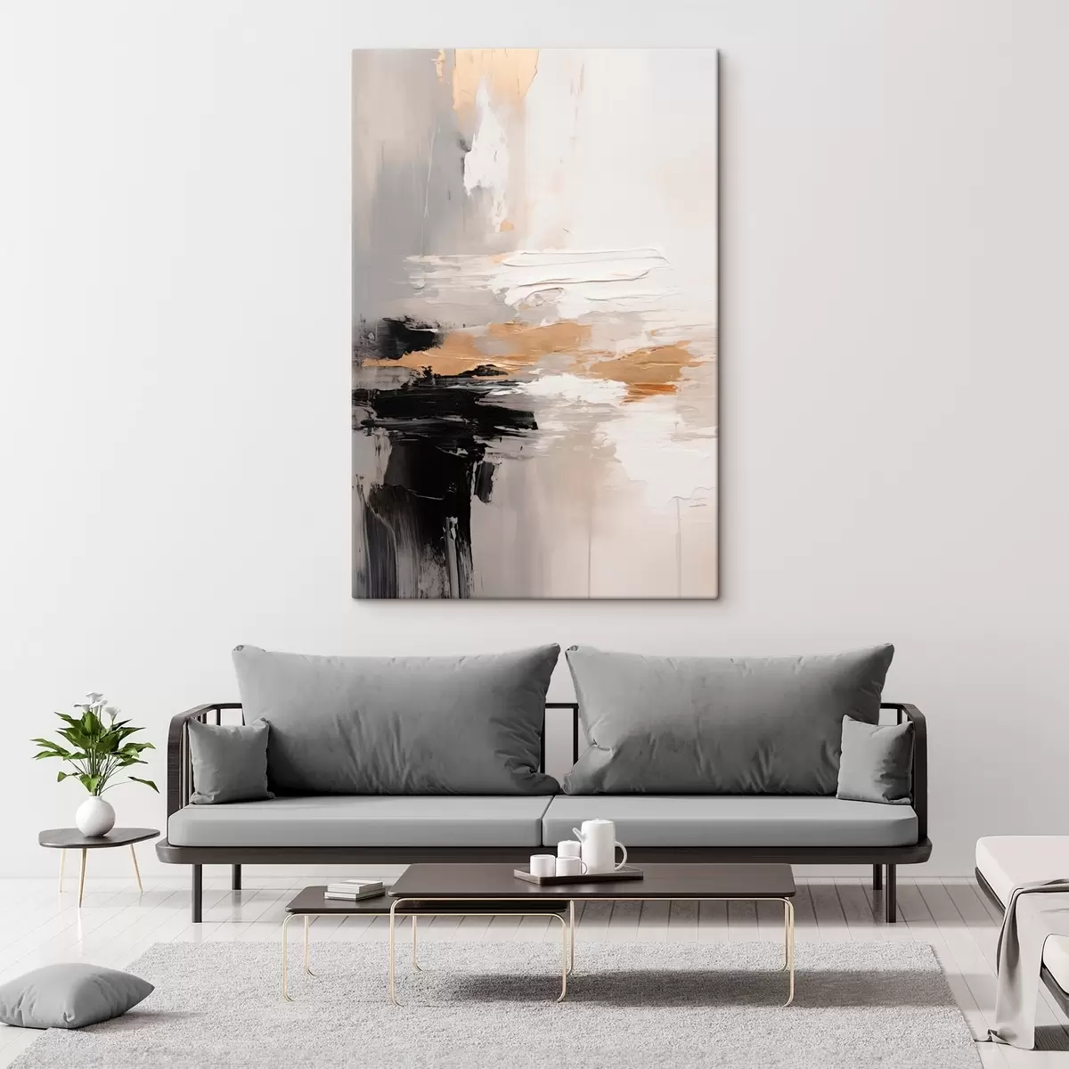 Vászonkép Nude tónusú ecsetvonások kontrasztos fekete és okker réteggel Nr s46544