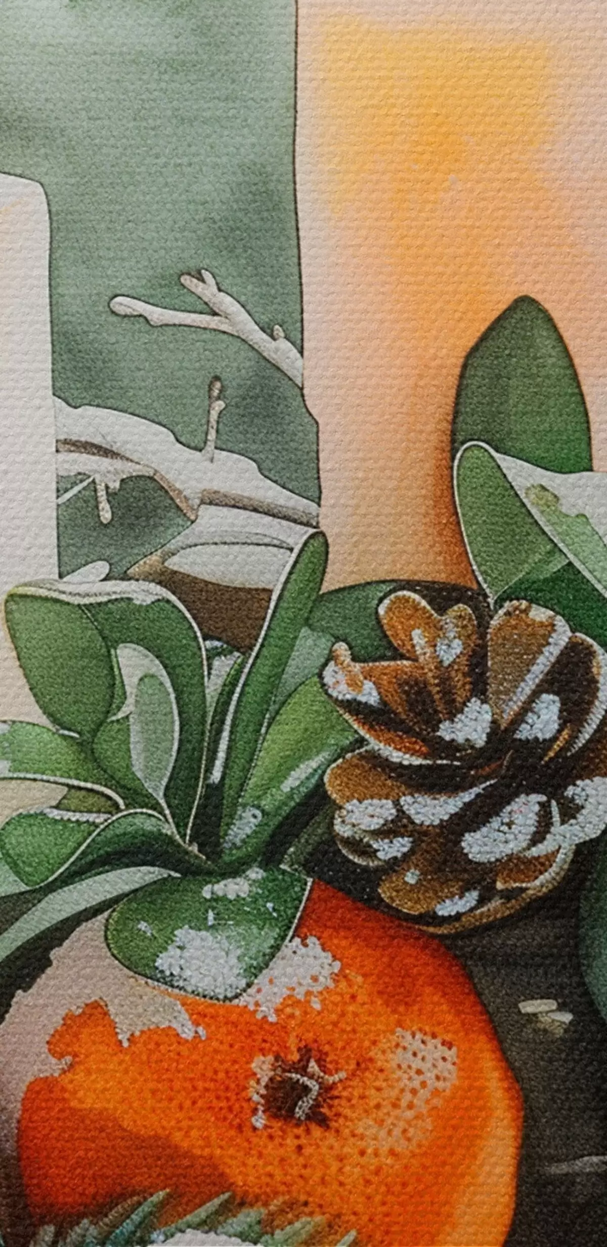 Vászonkép Gyertyák, mandarinok és fenyőtobozok Nr s46614