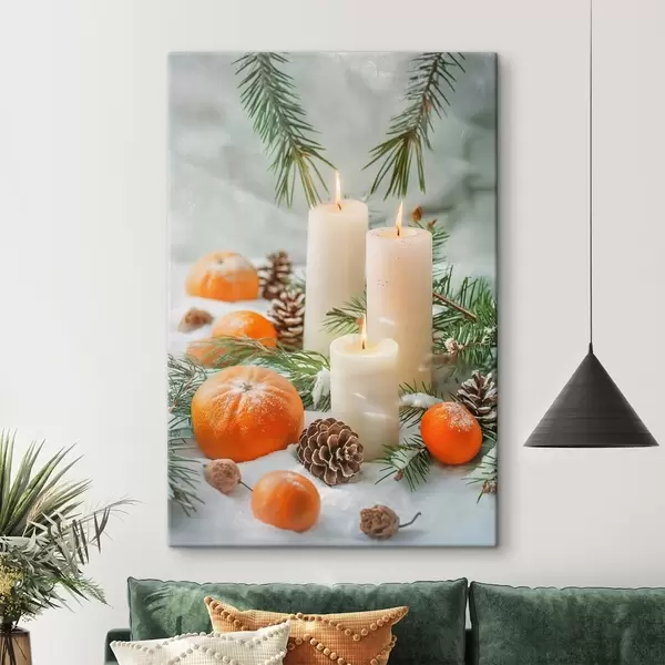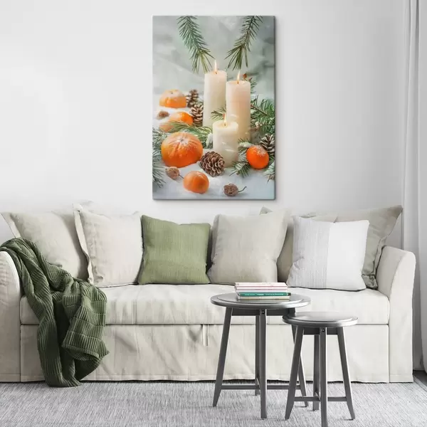 Vászonkép Gyertyák, mandarinok és fenyőtobozok Nr s46615