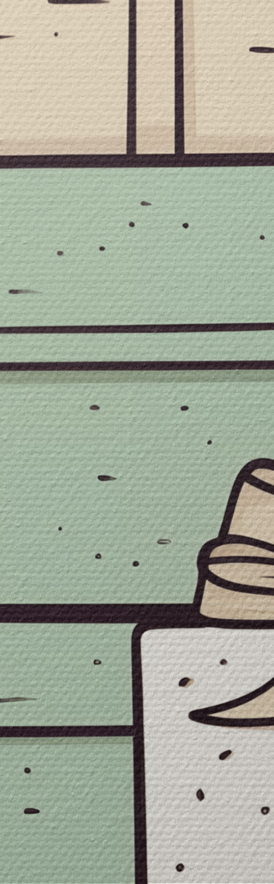 Ahhoz, hogy a vásznat a feszítőrúdra feszítsük anélkül, hogy a kép megsérülne, tükrözött képet használunk.