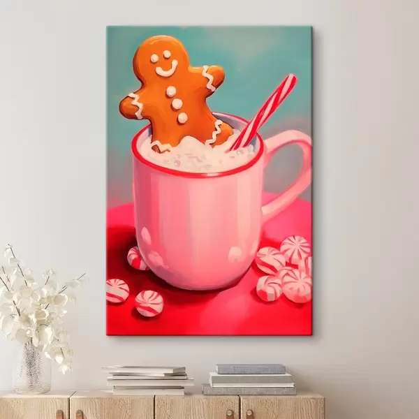 Vászonkép Mézeskalács figura egy csésze forró csokoládéban Nr s46635