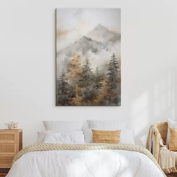 Vászonkép Erdei háttér hegyekkel, festmény utánzat Nr s46670