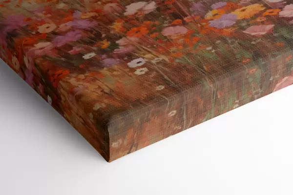 Vászonkép Tájkép, színes virágokkal teli mező, háttérben hegyekkel, lágy, pasztell színekkel Nr s46685