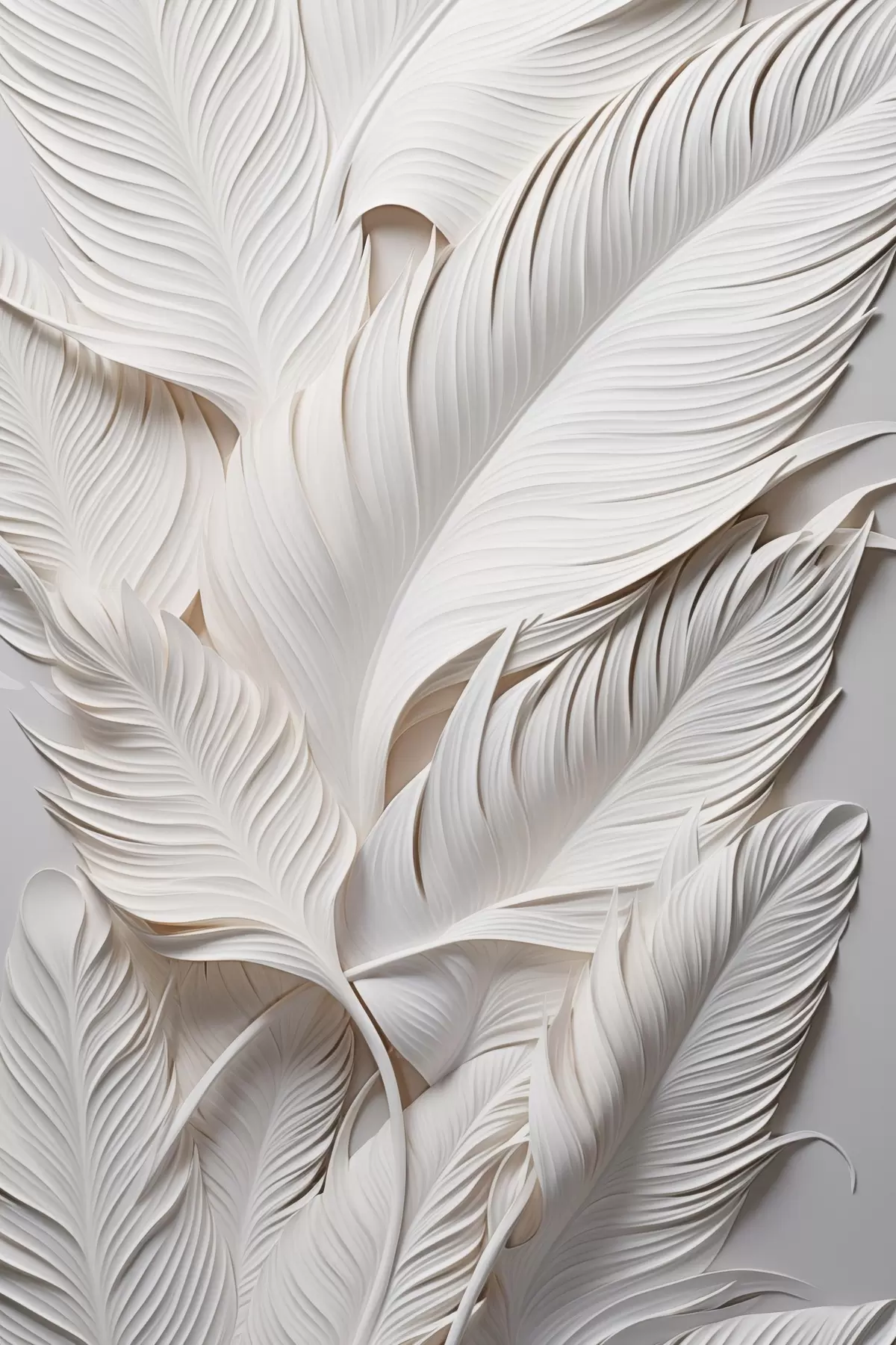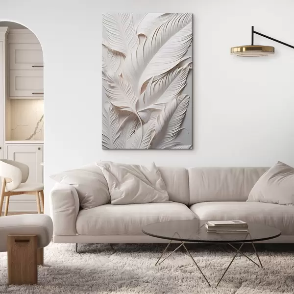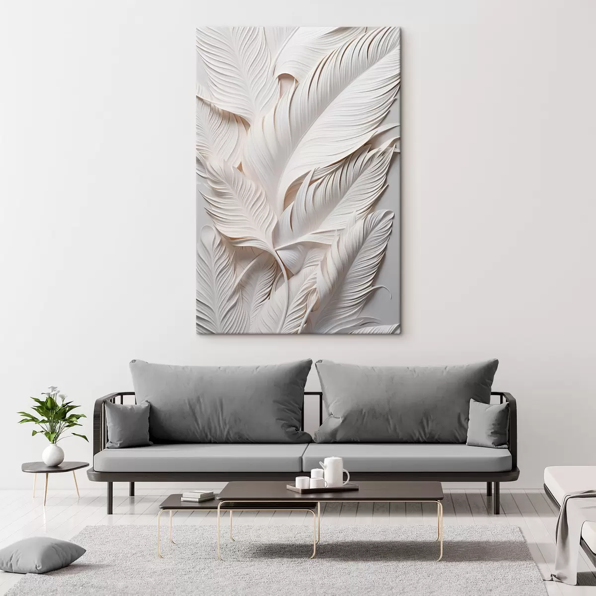 Vászonkép Fehér levelek bonyolult részletekkel, texturált és réteges hatást keltve, minimalista művészet Nr s46706