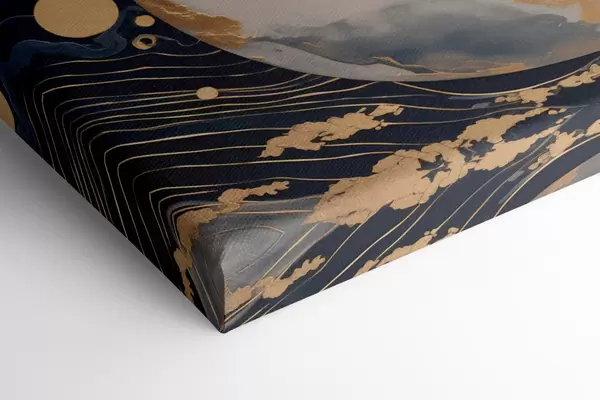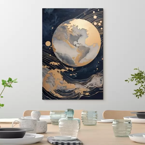 Vászonkép Texturált dekoratív bolygó sárga vonalakkal a háttérben, sárga pontokkal a háttérben, sötét háttérrel Nr s46708
