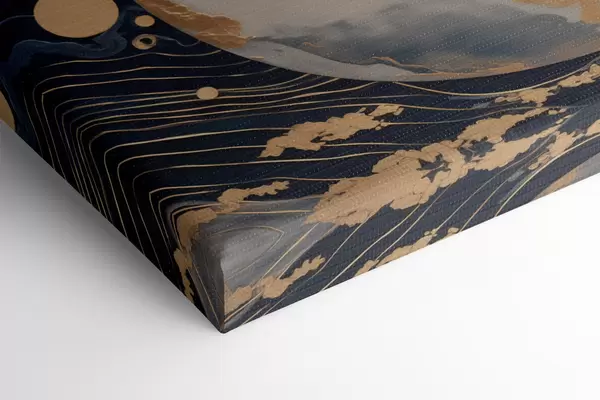 Vászonkép Texturált dekoratív bolygó sárga vonalakkal a háttérben, sárga pontokkal a háttérben, sötét háttérrel Nr s46708
