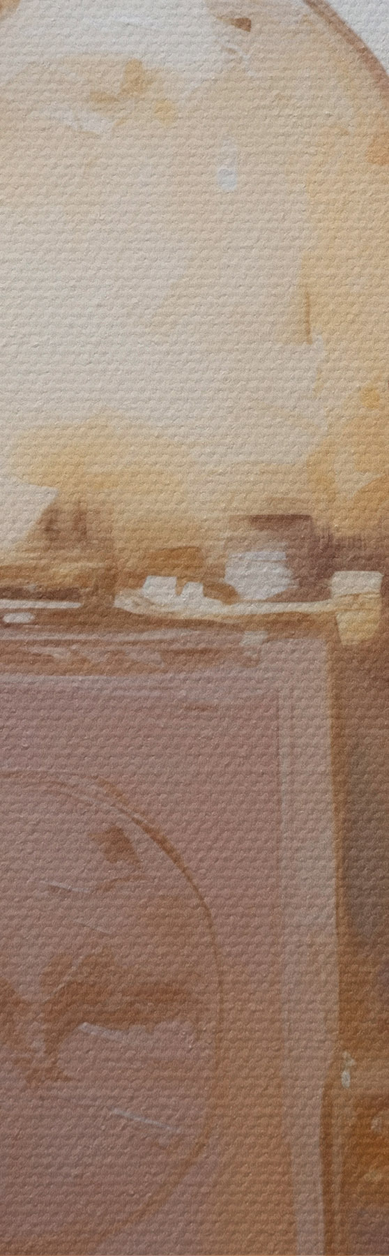 Ahhoz, hogy a vásznat a feszítőrúdra feszítsük anélkül, hogy a kép megsérülne, tükrözött képet használunk.