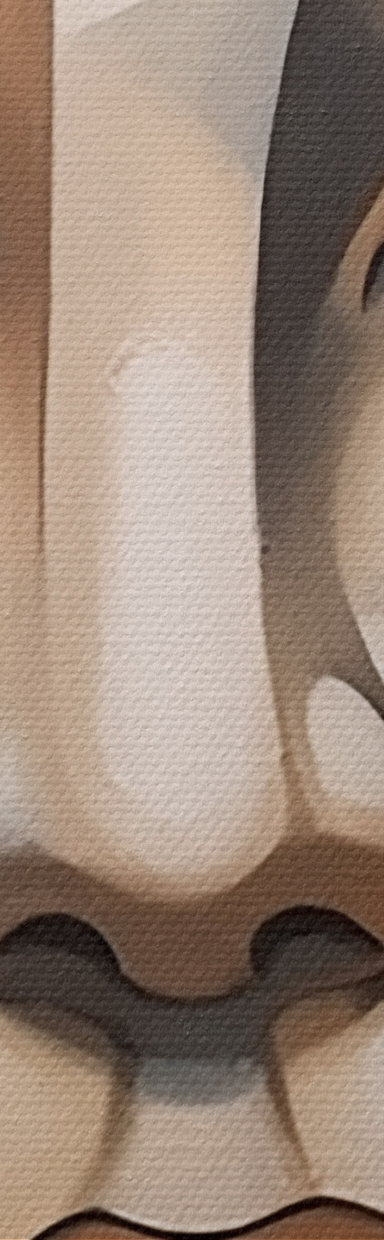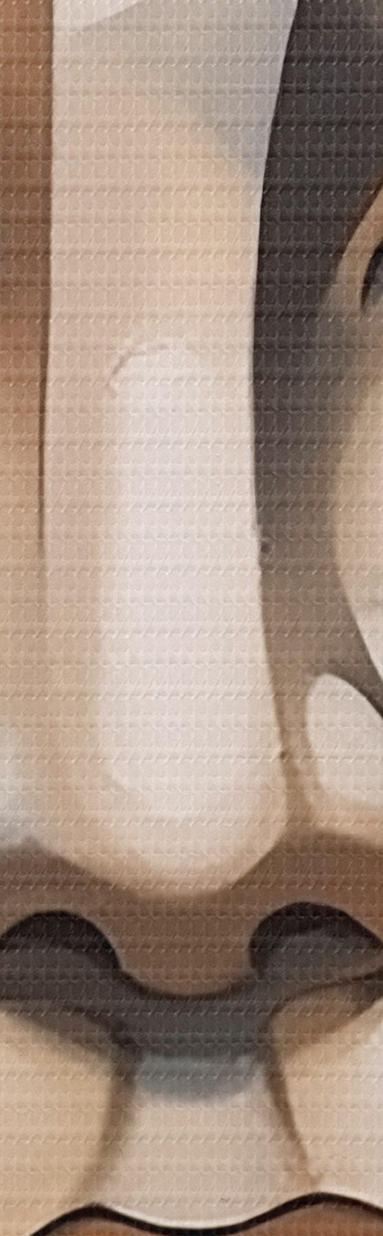 Ahhoz, hogy a vásznat a feszítőrúdra feszítsük anélkül, hogy a kép megsérülne, tükrözött képet használunk.