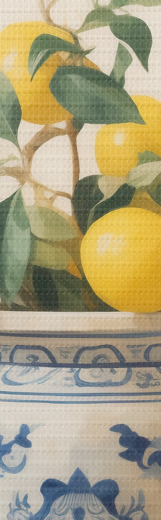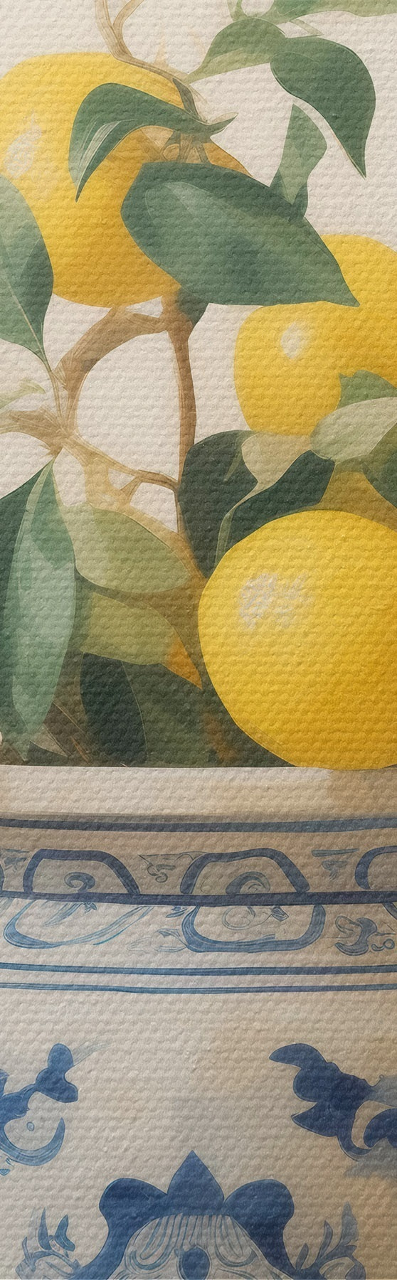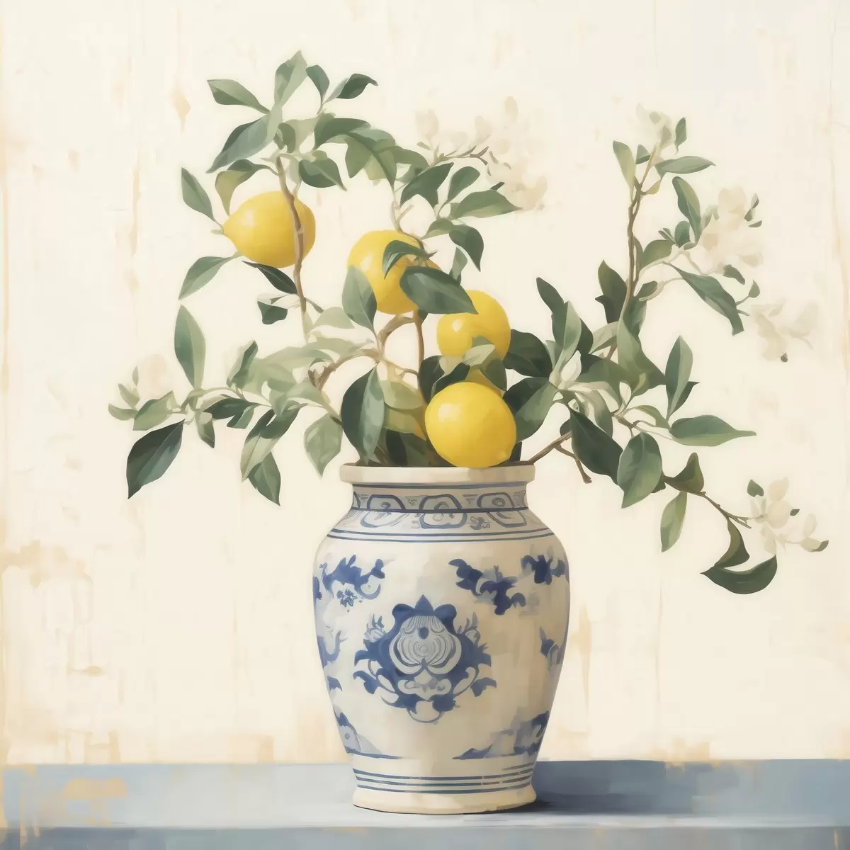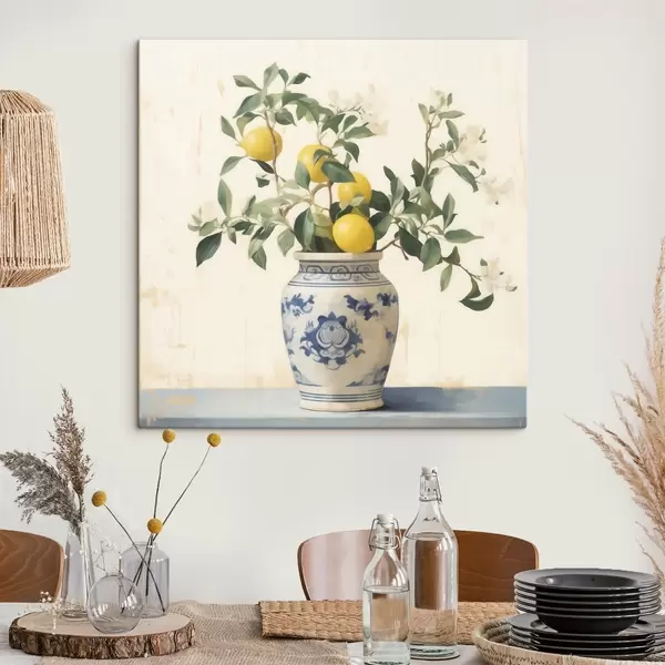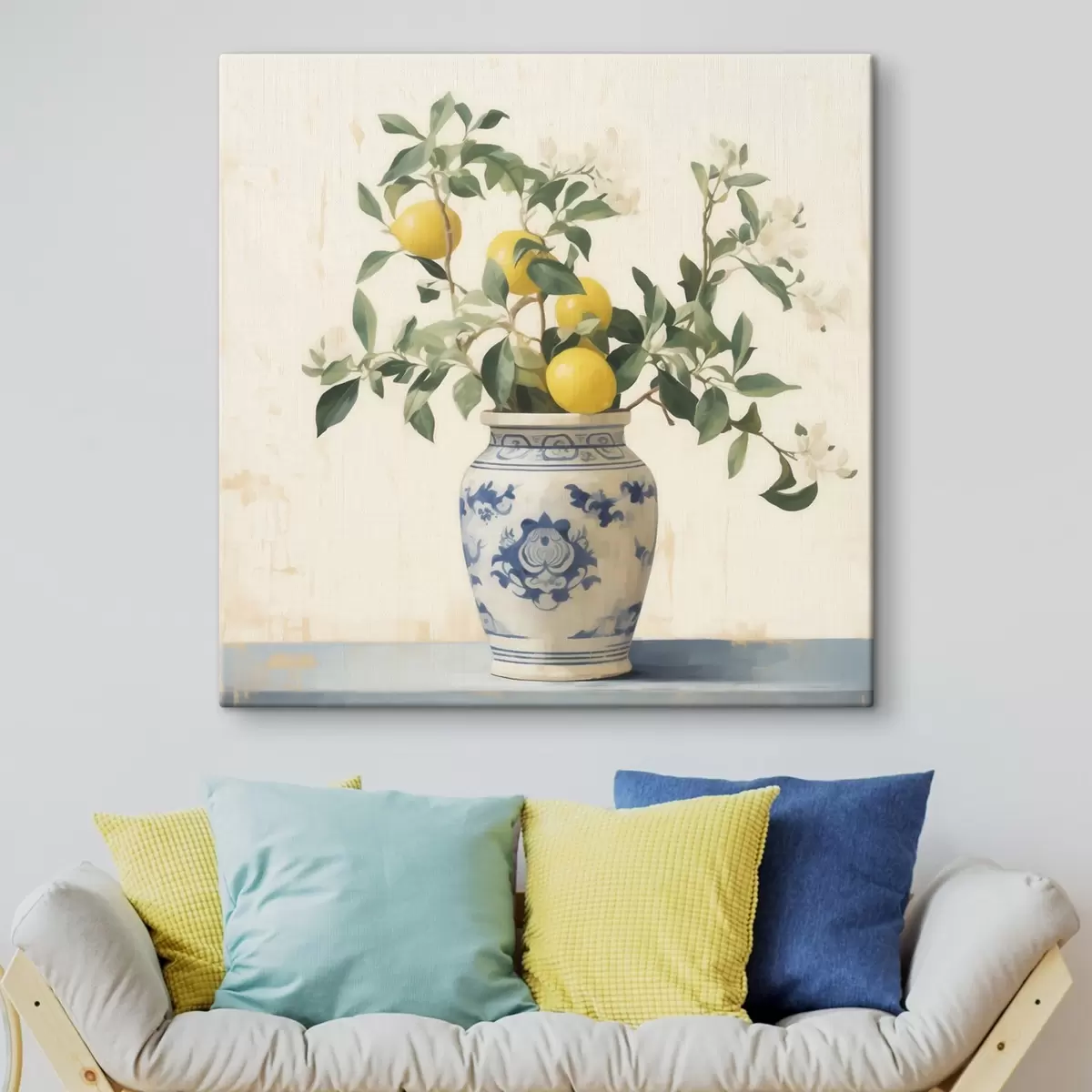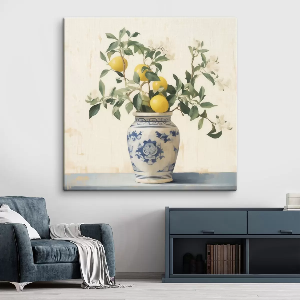 Vászonkép Citromok kék-fehér kerámia vázában, olajfestmény stílusban Nr s46924