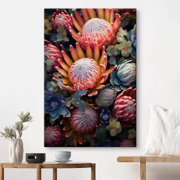 Vászonkép Proteák, eukaliptuszok és pozsgások kompozíciója fotórealisztikus digitális művészeti stílusban Nr s46925