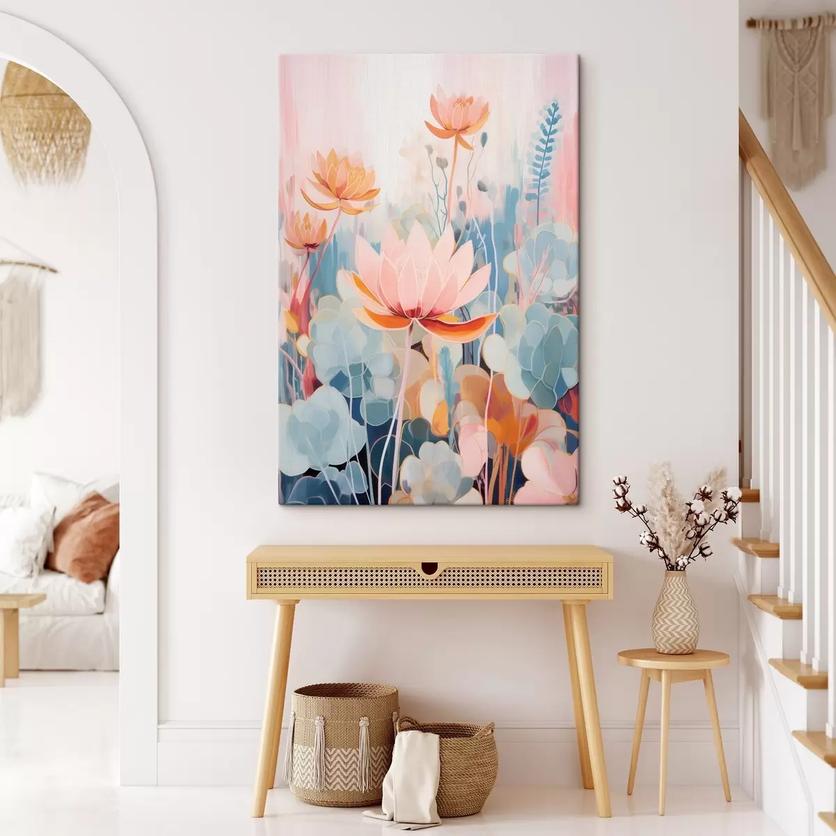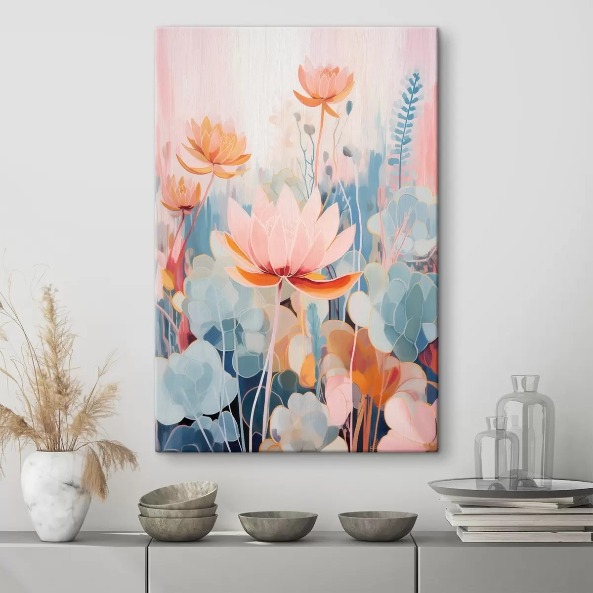 Vászonkép Lótuszok és díszes lombozat rózsaszín és kék színpalettában Nr s46929