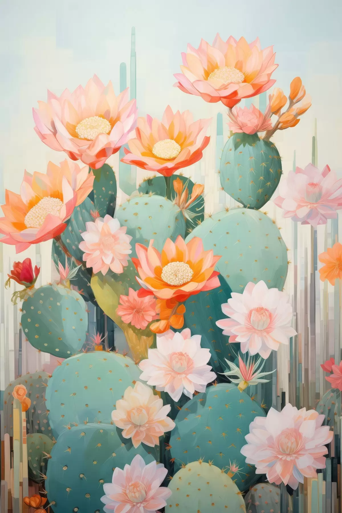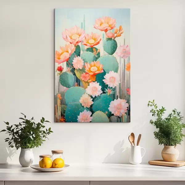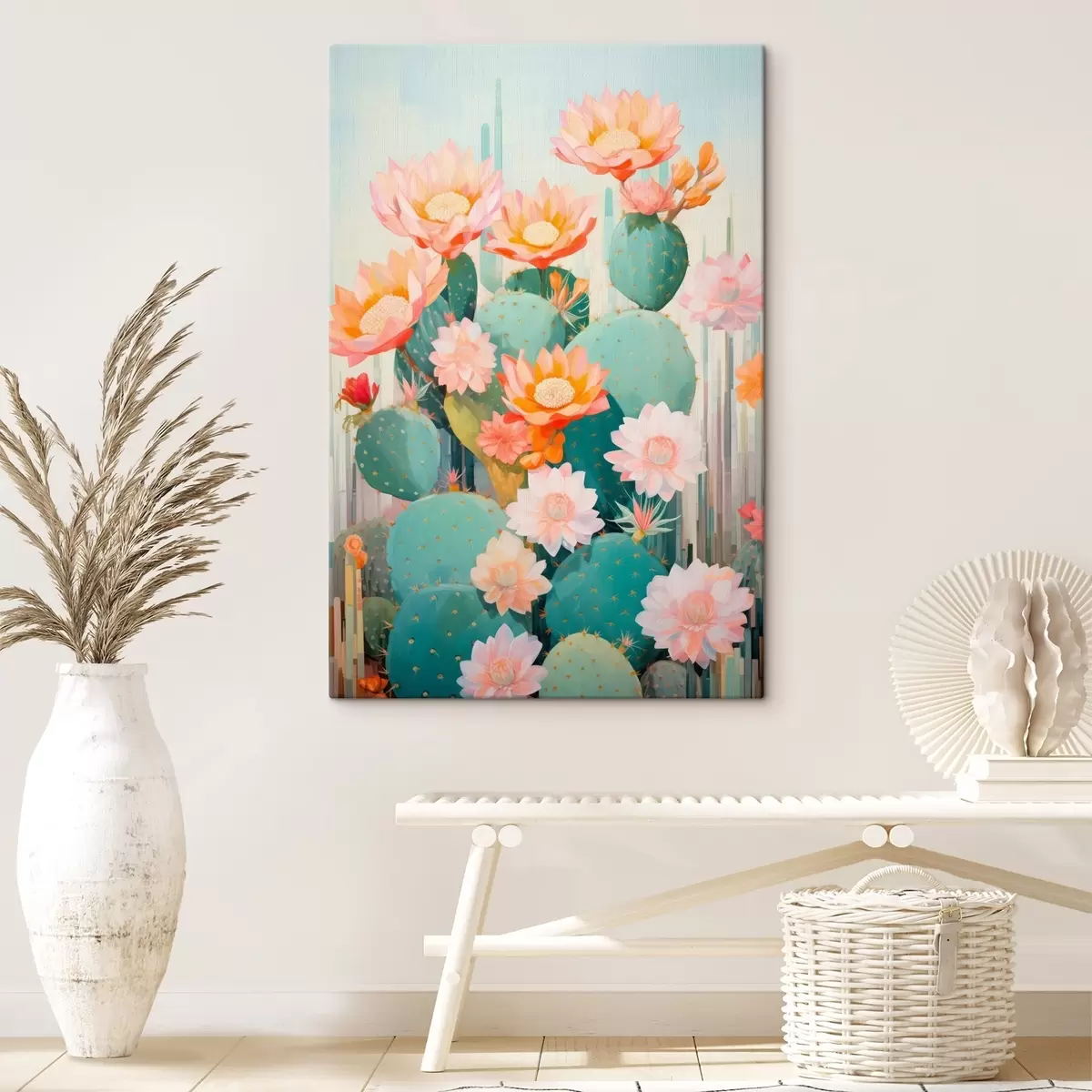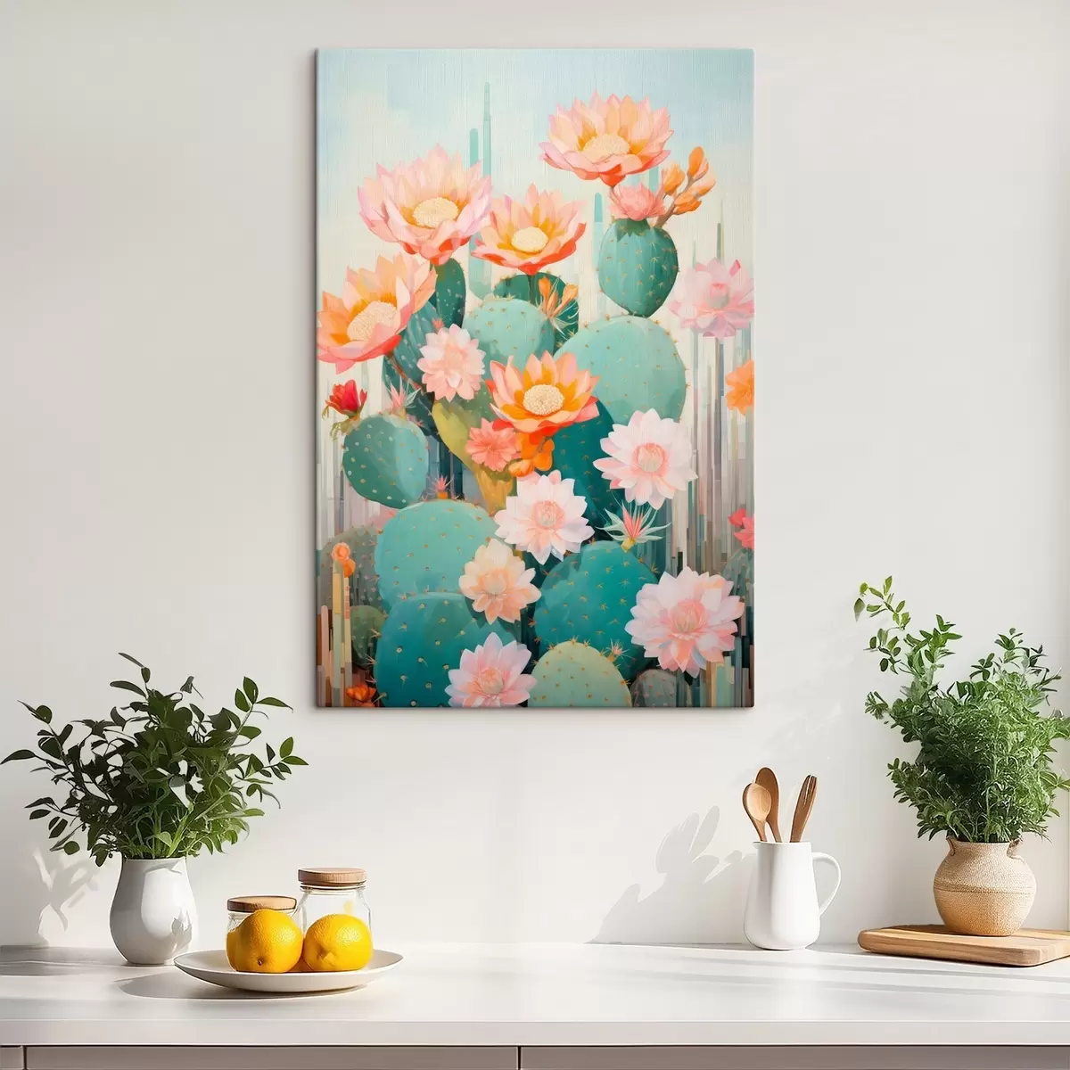 Vászonkép Kaktuszvirágos kert lágy pasztell színekkel, illusztrációs stílusban Nr s46935