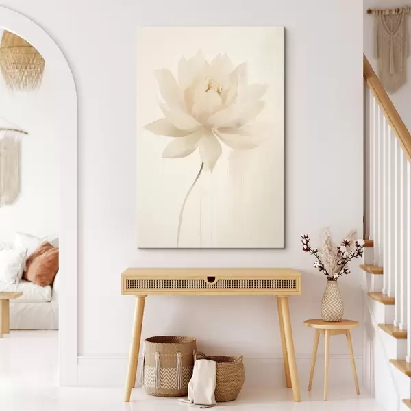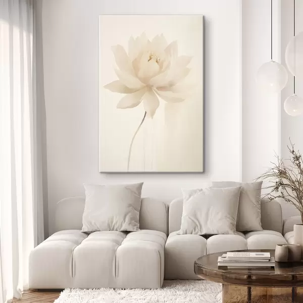 Vászonkép Finom fehér lótusz világos háttér előtt, minimalista stílusban Nr s46936