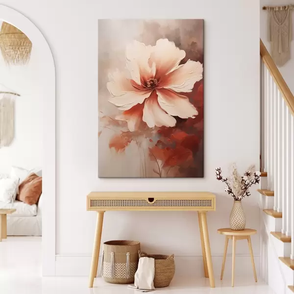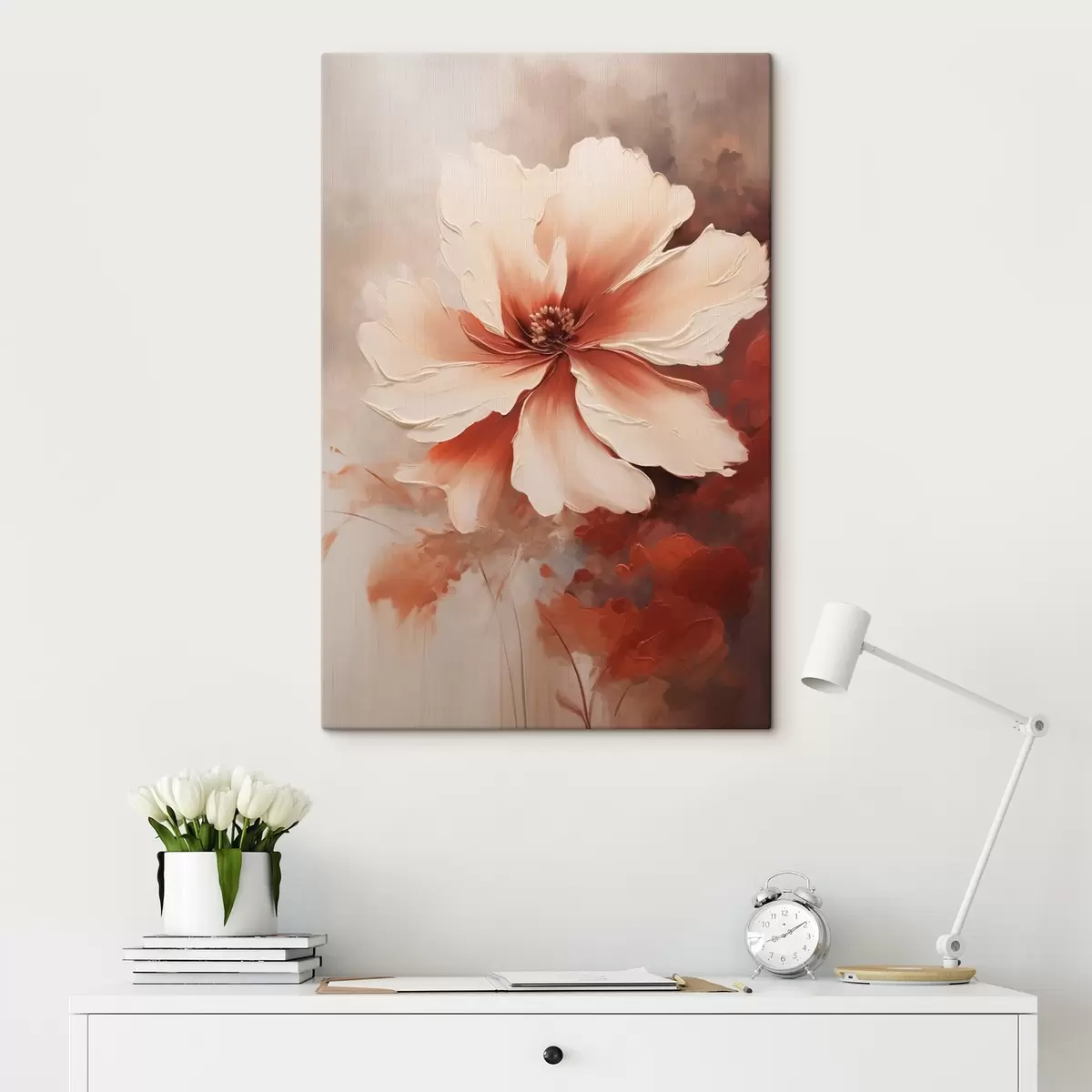 Vászonkép Közelkép egy fehér korallvirágról homályos háttér előtt, olajfestmény stílusban Nr s46939