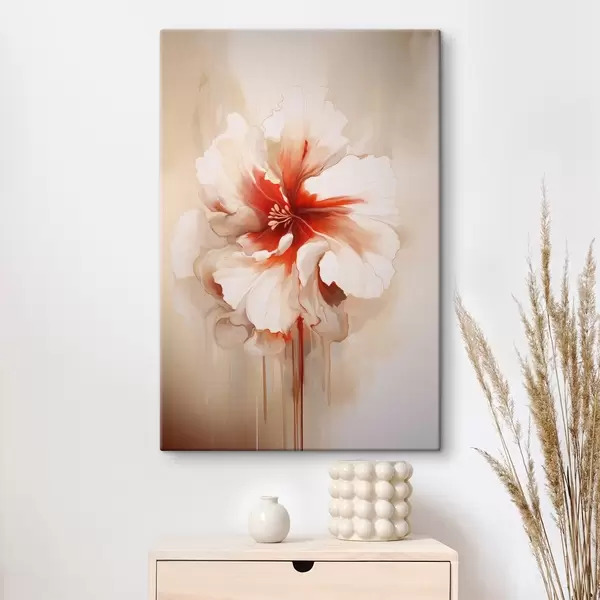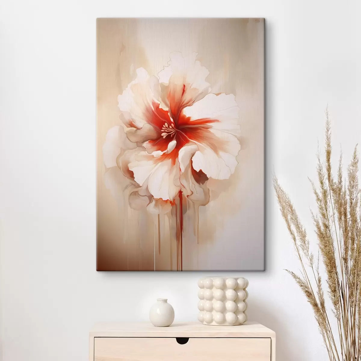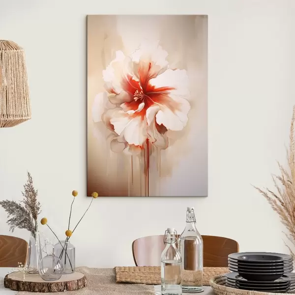 Vászonkép Fehér és piros virág, félig átlátszó szirmokkal és lecsöpögő festékcseppekkel Nr s46940