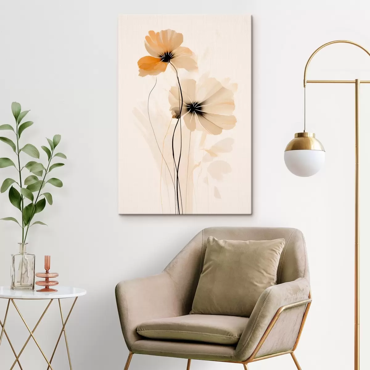 Vászonkép Minimalista stílusú, bézs-barack színű virágok sötét közepekkel Nr s46945
