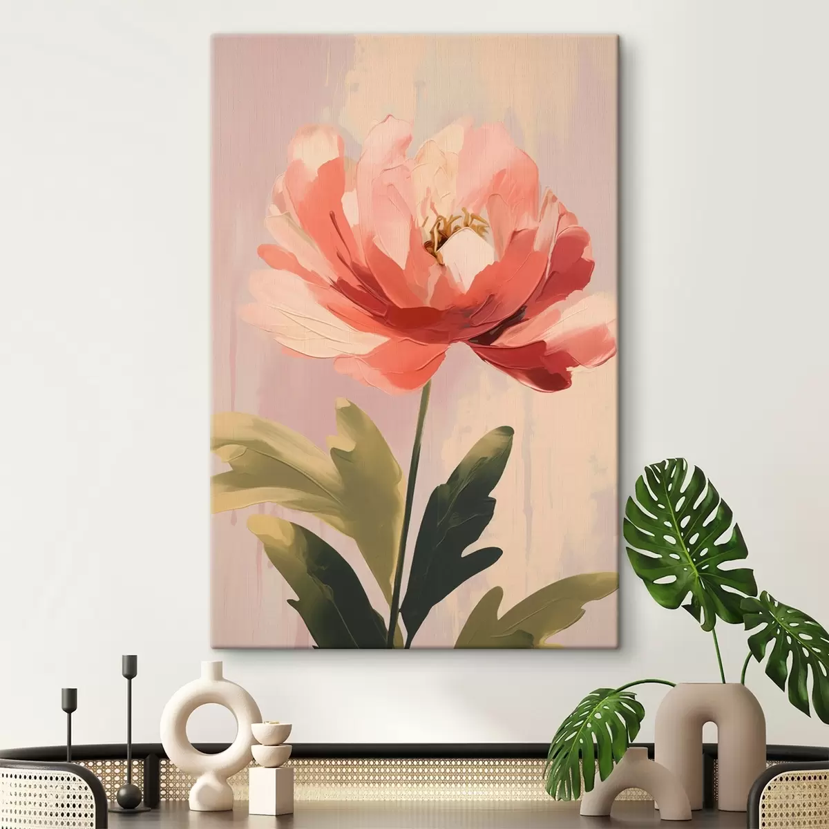 Vászonkép Korallszínű pünkösdi rózsa pasztell háttér előtt, modern művészeti illusztrációs stílusban Nr s46949