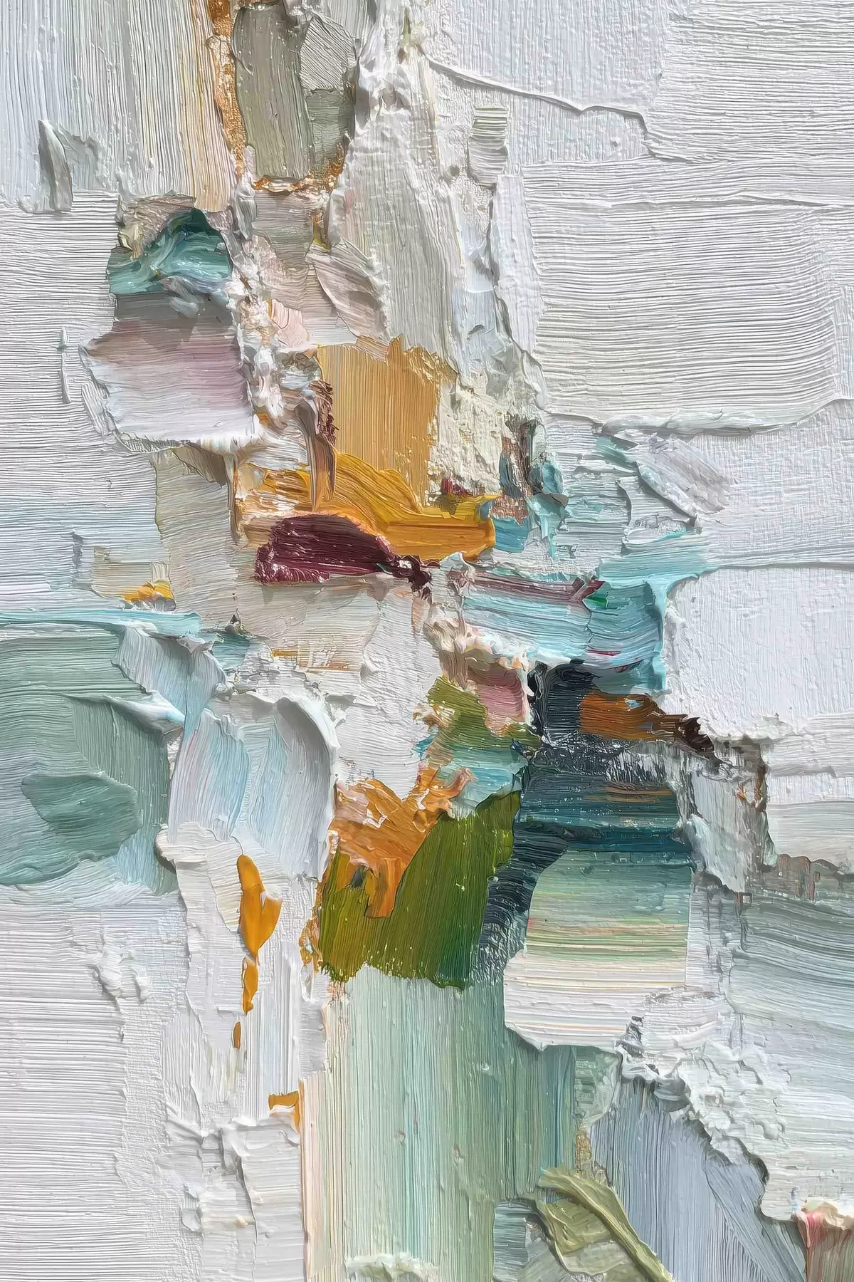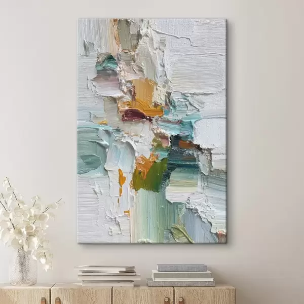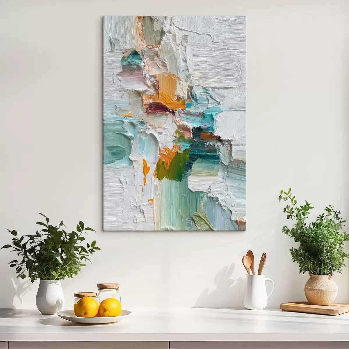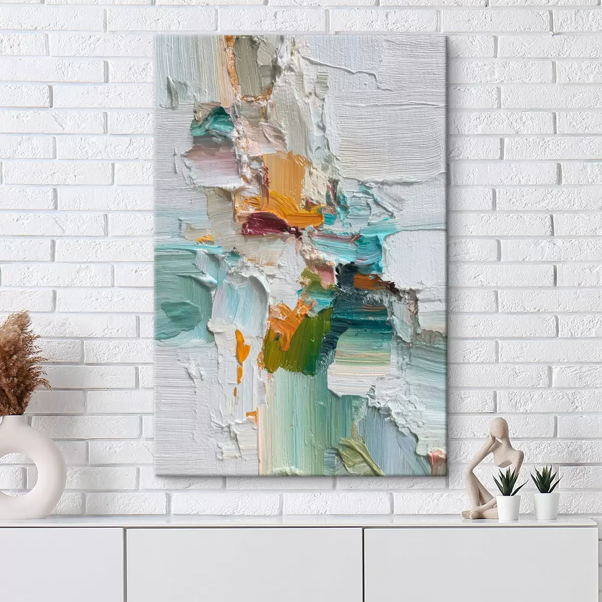 Vászonkép Ölajzfestmény stílusú kompozíció türkiz és narancssárga akcentussal Nr s46958