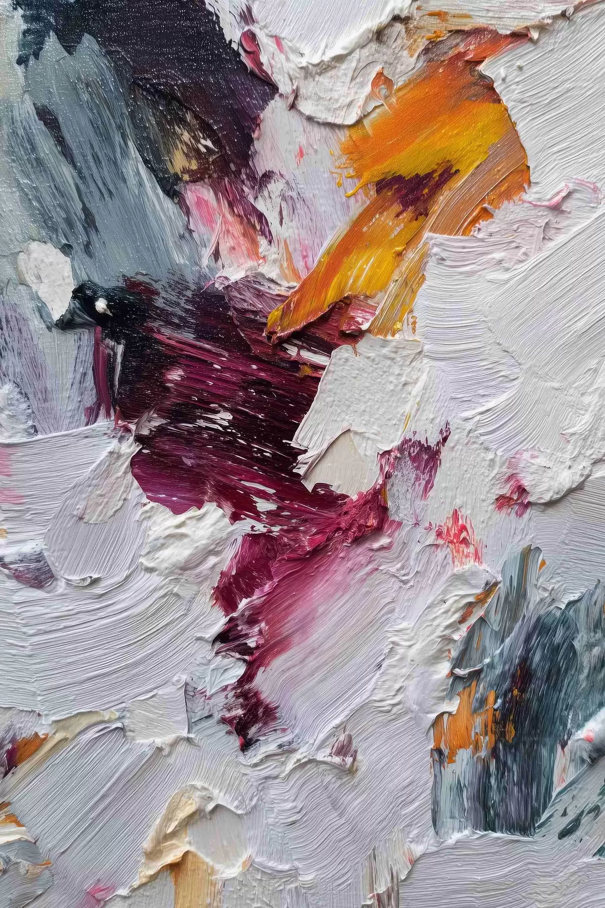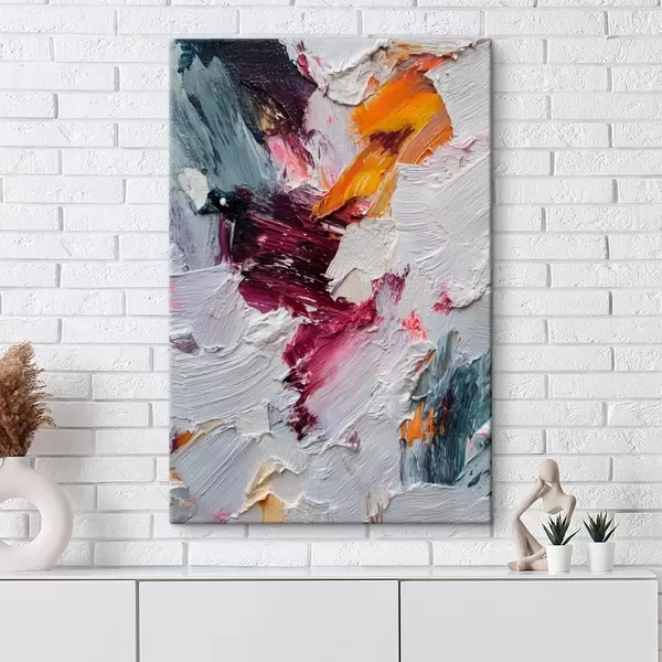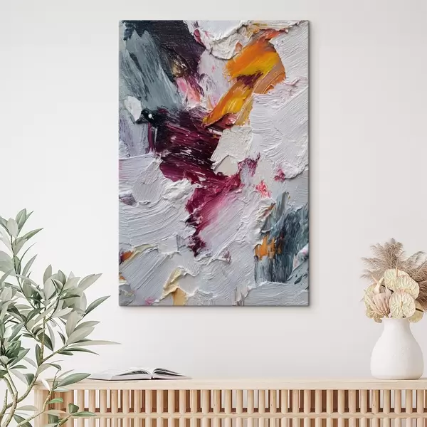 Vászonkép Absztrakt kompozíció intenzív cseresznye- és narancssárga ecsetvonásokkal, olajfestmény stílusban Nr s46959