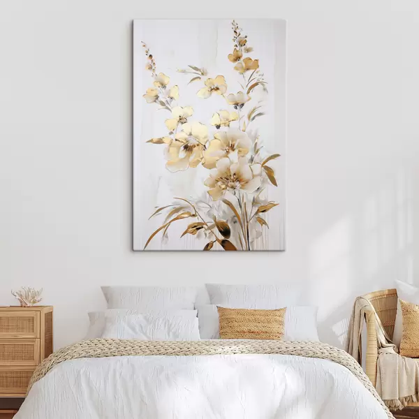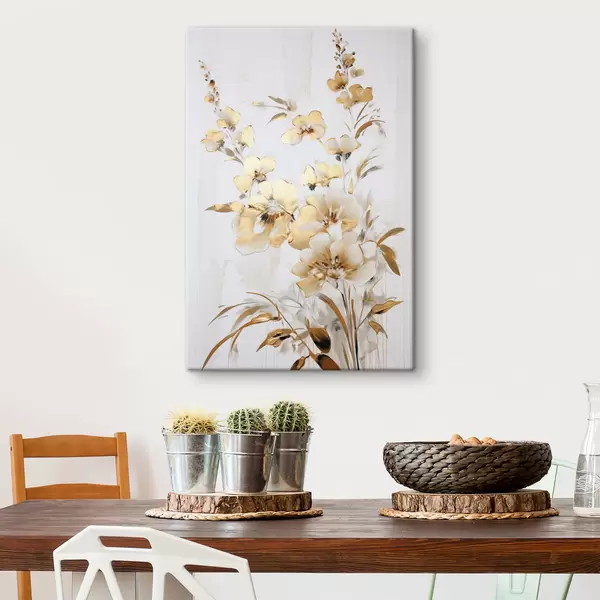 Vászonkép Texturált sárga virágok és levelek fehér háttér előtt, finom ecsetvonásokkal Nr s47016