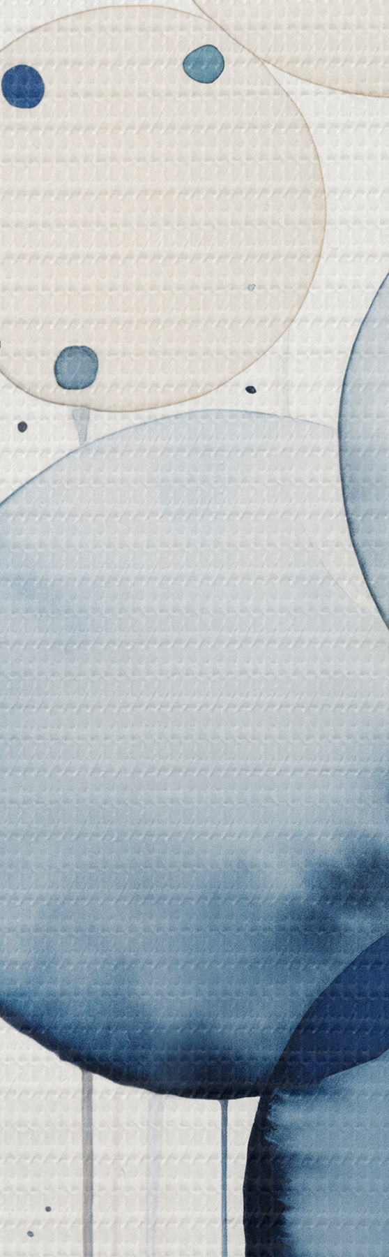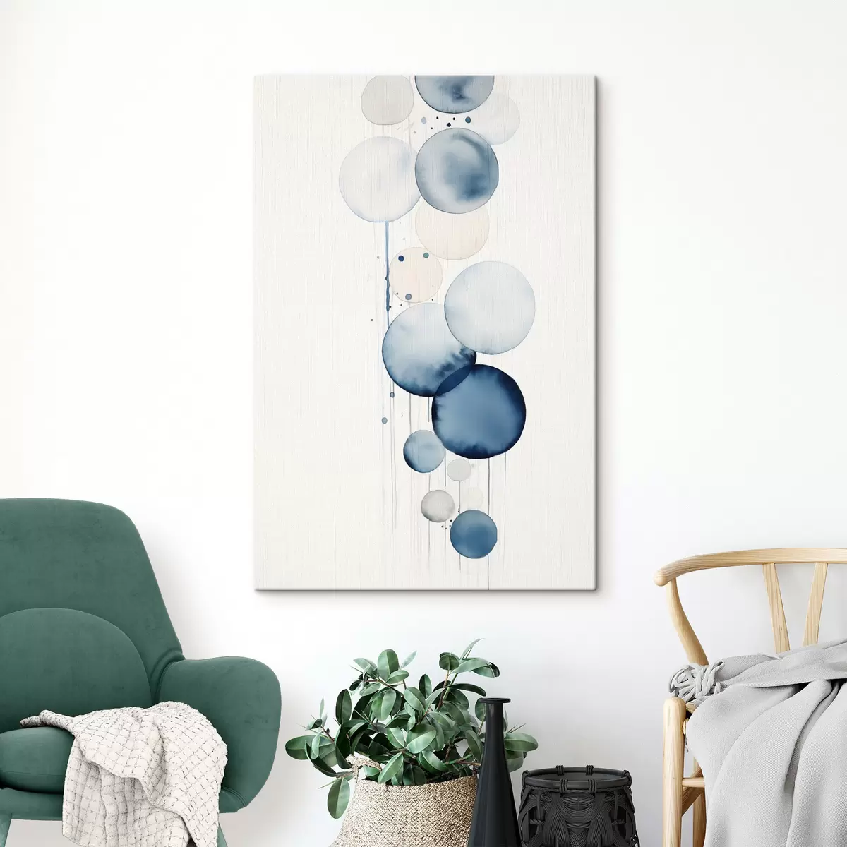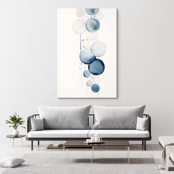 Vászonkép Absztrakt, texturált, különböző méretű kék és fehér akvarell körök fehér háttér előtt Nr s47020