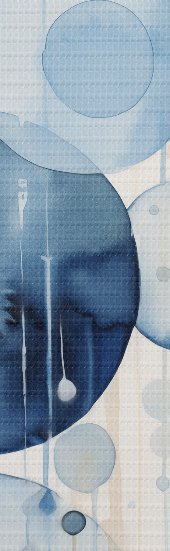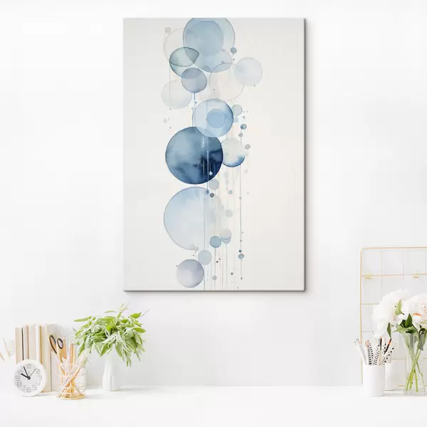 Vászonkép Absztrakt, texturált, különböző méretű kék és fehér akvarell körök fehér háttér előtt Nr s47021