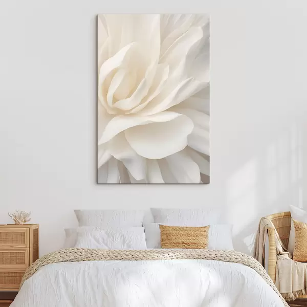Vászonkép Absztrakt fehér virág finom, réteges szirmokkal, minimalista művészet Nr s47024