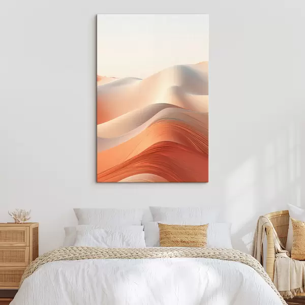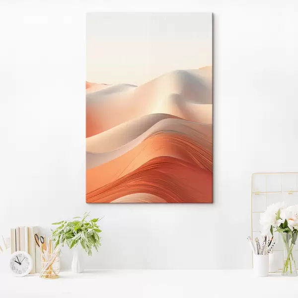 Vászonkép Absztrakt sivatagi táj, meleg narancssárga és fehér tónusú, hullámzó homokdűnékkel Nr s47031