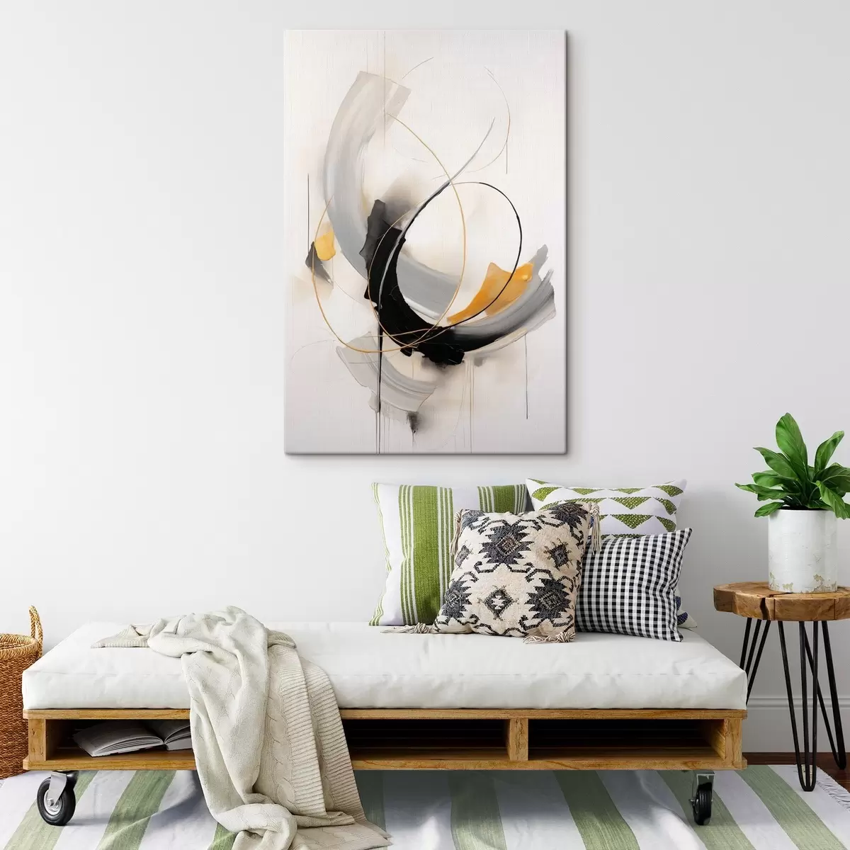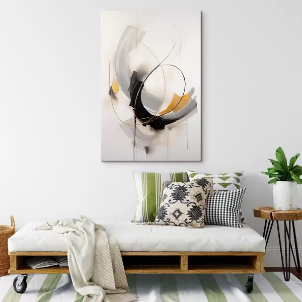 Vászonkép Absztrakt festmény sárga, fekete és fehér ecsetvonásokkal, dinamikus vonalakkal Nr s47035