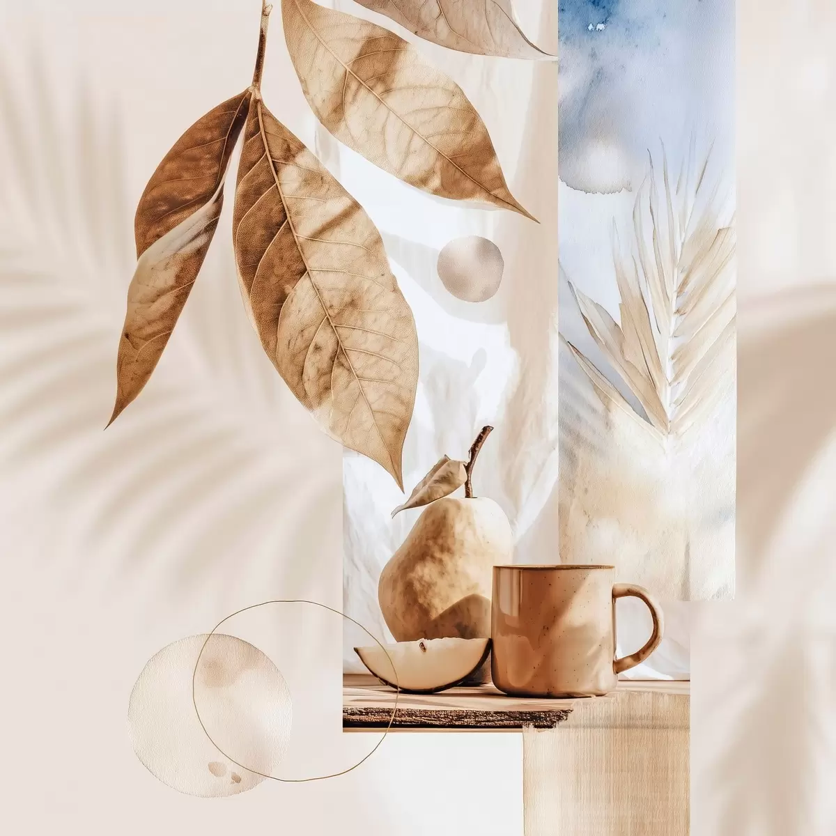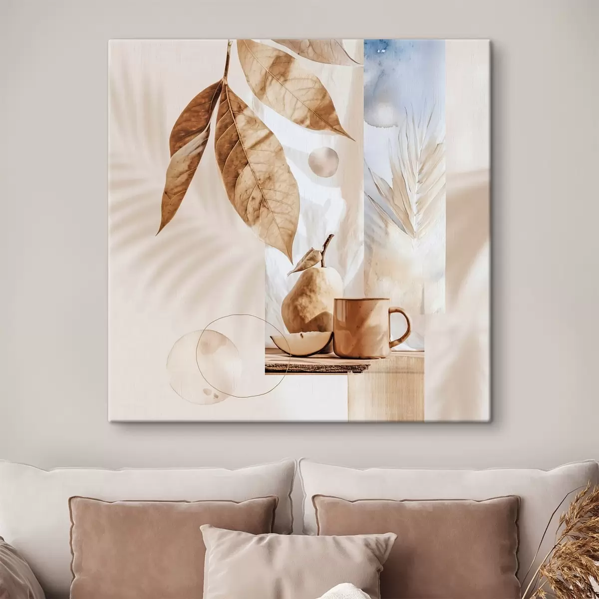 Vászonkép Absztrakt, levelekkel, körtével és csészével Nr s47047