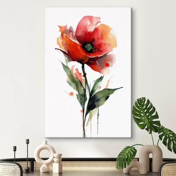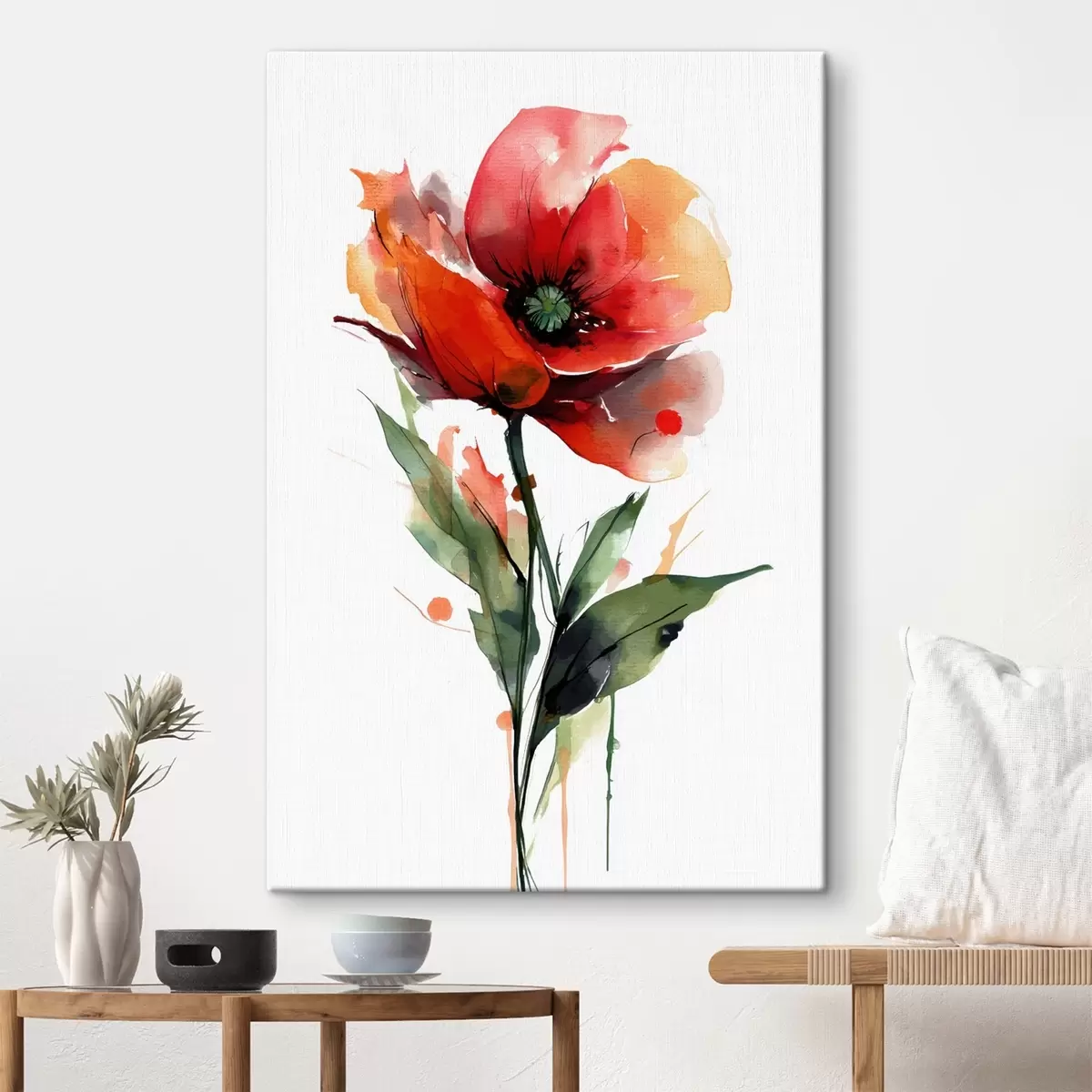 Vászonkép Poppy virág kifejező akvarellfesték cseppekkel, modern művészeti illusztrációs stílusban Nr s47086