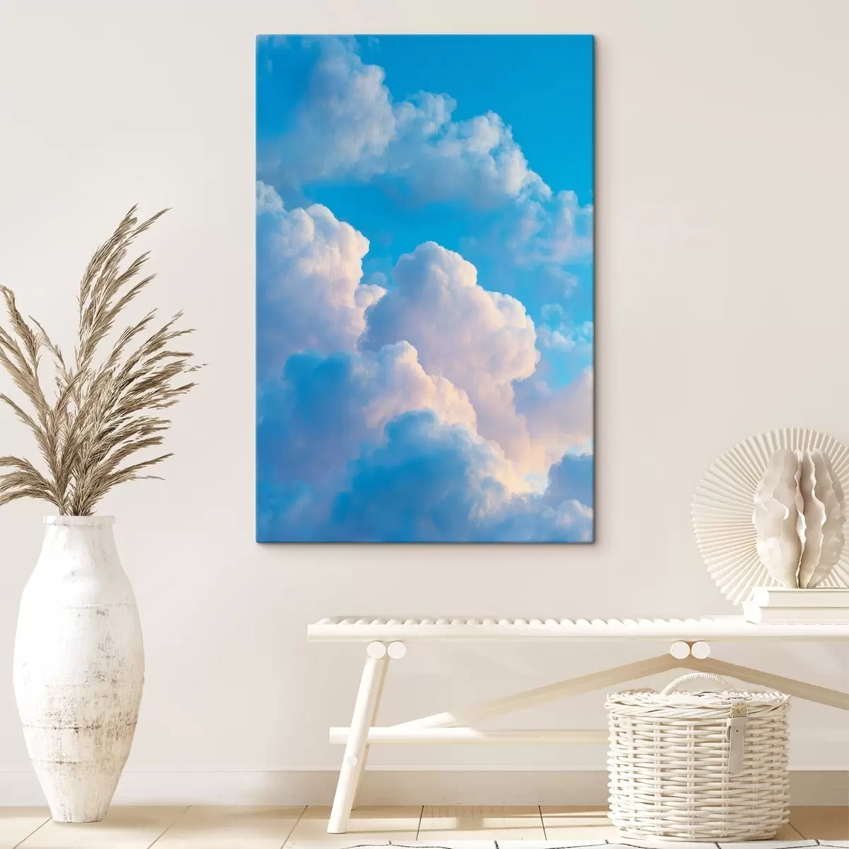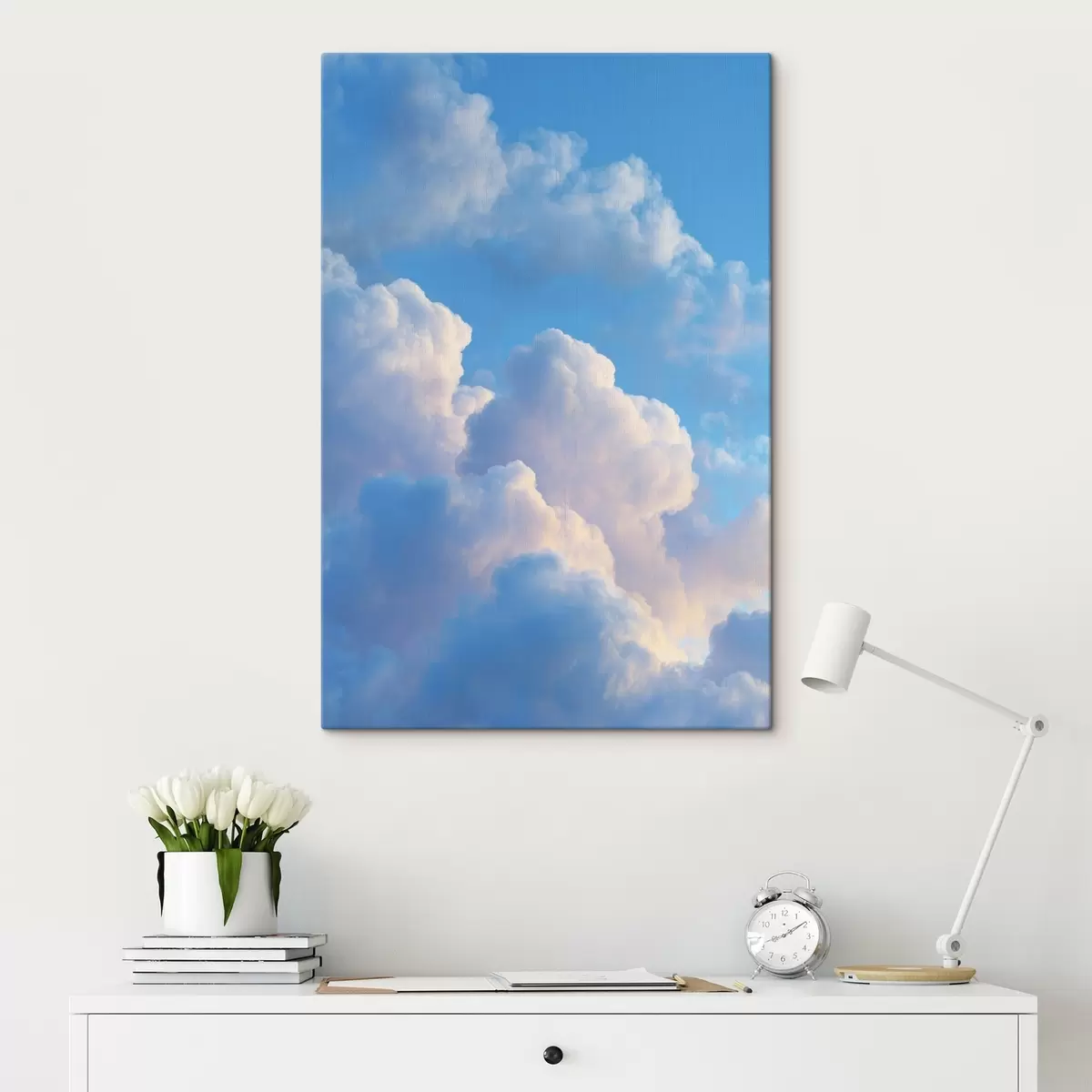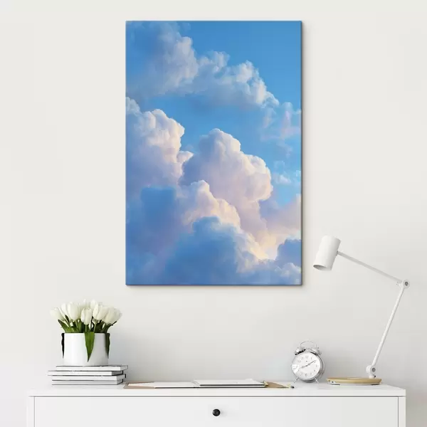 Vászonkép Lágy kék és rózsaszín árnyalatú, fotórealisztikus digitális grafikai stílusú, terjedelmes felhők Nr s47088