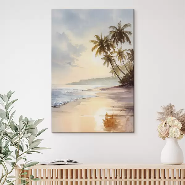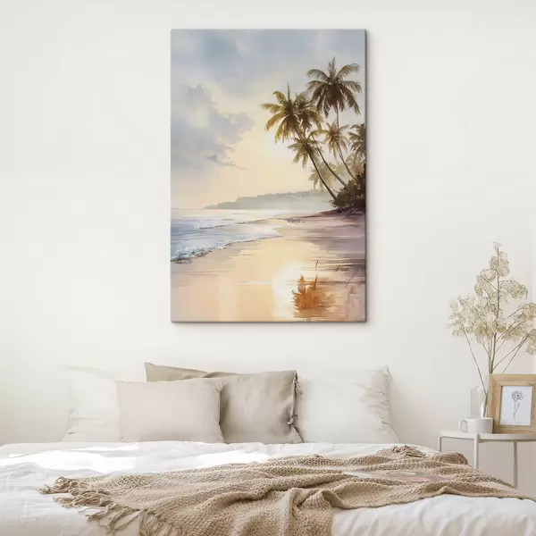 Vászonkép naplemente a tengerparton egy szigeten, akvarell stílusban Nr s47135