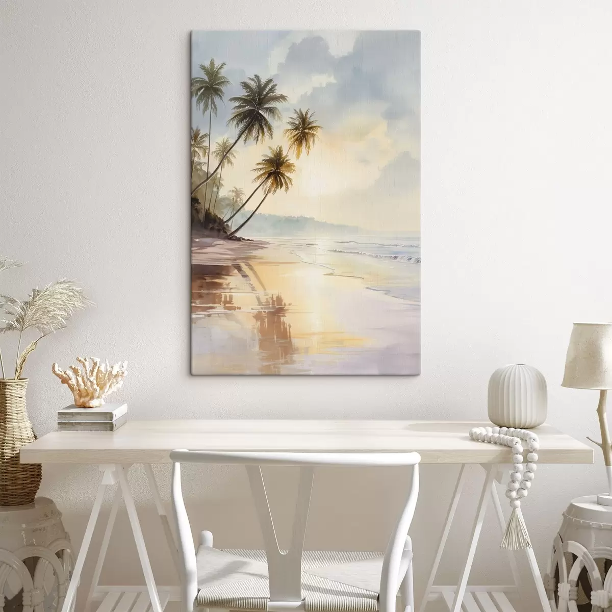 Vászonkép naplemente a tengerparton egy szigeten, akvarell stílusban Nr s47136