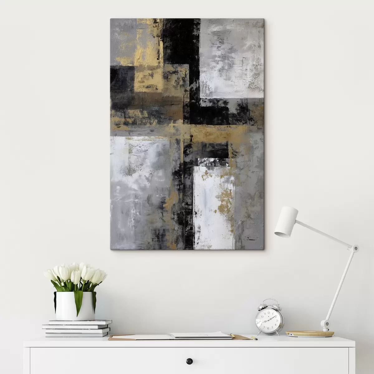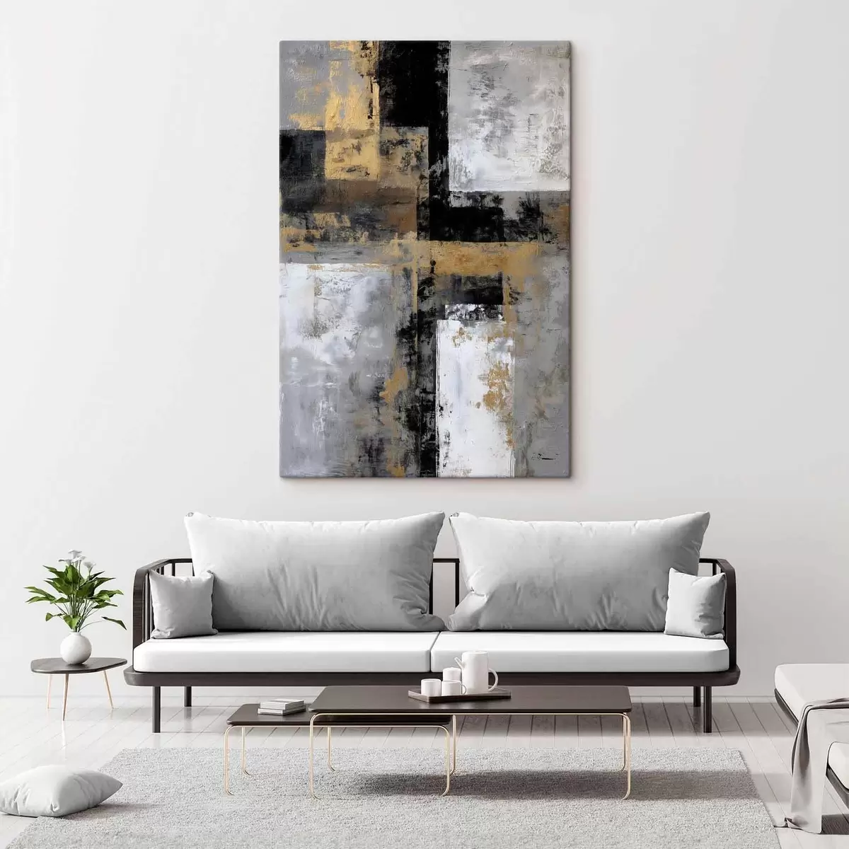 Vászonkép kortárs texturális absztrakció fekete, szürke és fehér árnyalatokban Nr s47139