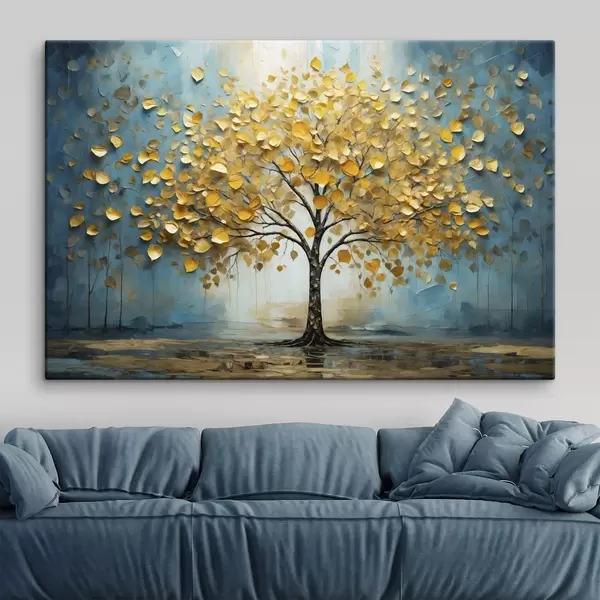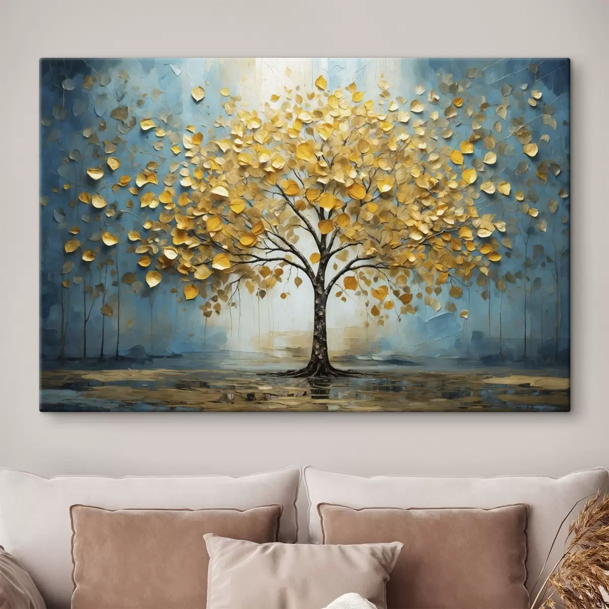 Vászonkép Kék háttér előtt sárga levelű fa Nr s47256