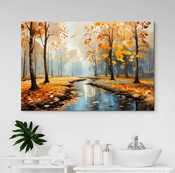 Vászonkép Őszi erdő patakkal és sárga levelekkel Nr s47278