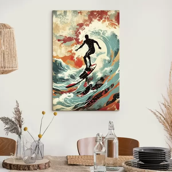 Vászonkép Szörfös sziluett hullámokon, élénk színekben Nr s47284